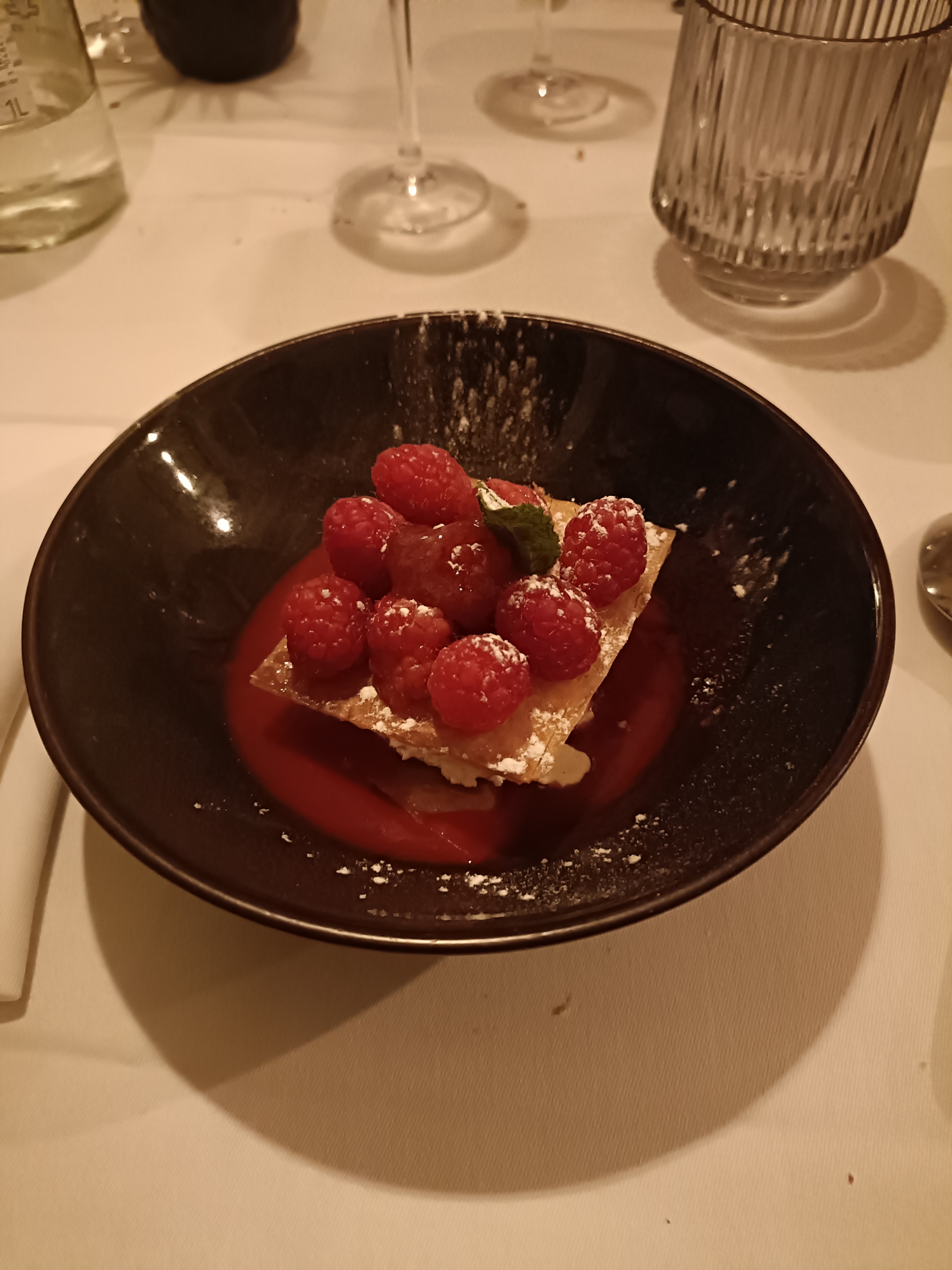 Le restaurant est intimiste avec un cadre agréable. La carte est variée et le choix des vins aussi. Je me suis replongé en enfance avec le croquant aux framboises. L'équipe est souriante et à l'écoute.