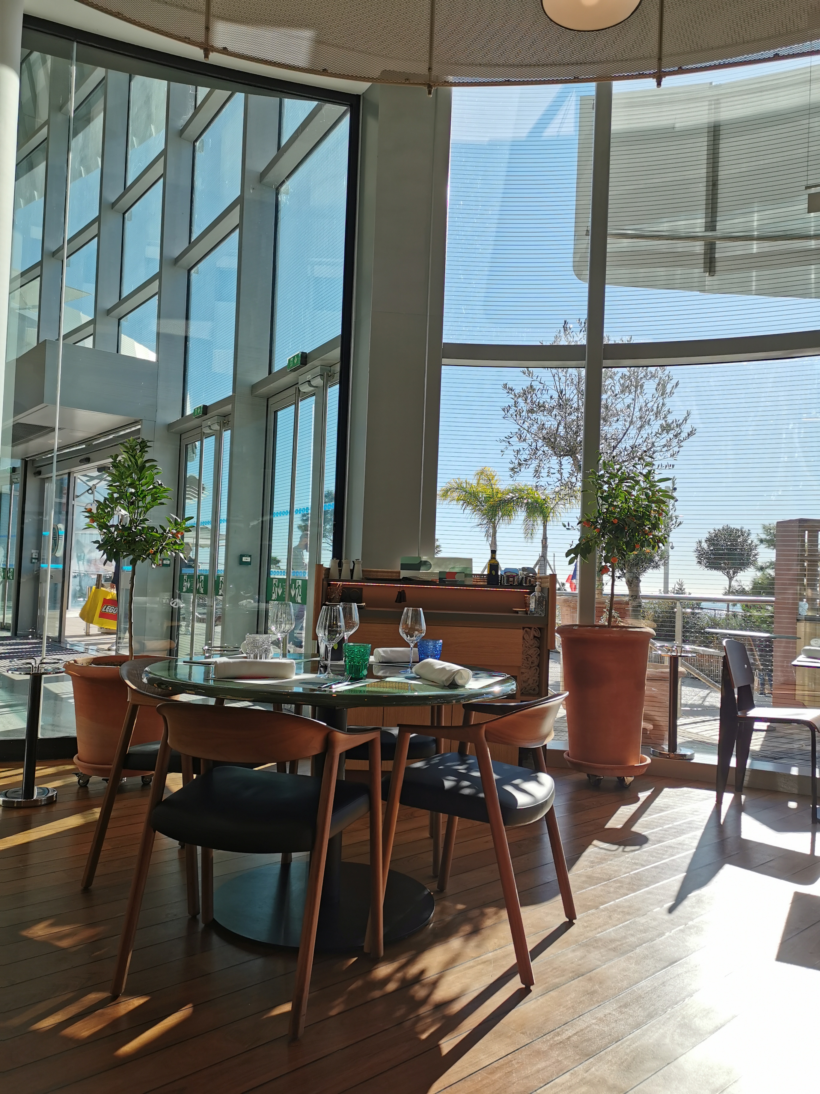 Attirés par ce « concept Ducasse » et logé au sein de Cap3000, nous sommes venus fêté la fin des vacances scolaires en famille. Accueil parfait, on sent qu’un effort a été apporté pour que le service soit à la hauteur de la réputation et c’est réussi. Raphaël notre serveur du jour a été particulièrement parfait durant tout le repas, poussant le vice jusqu’à nous apporter des chocolats de la maison d’à côté (Chocolats Ducasse) pour casser l’amertume de notre café à la fin du repas. Un cocktail n’est pas à la carte, aucun souci, laissez vous séduire par l’imagination du barman, il suffit de lui indiquer ce que vous préférez comme fruits et comme alcool. Nous avons ensuite craqué sur la Socca et les panisses en entrée à partager, un régal. Puis Chawarma revisité pour les enfants, poisson à la cuisson parfaite pour moi et plusieurs entrées pour mon épouse. Seul 2 bémols : un peu plus de sauce pour le poisson aurait été bienvenu. Et les desserts sont exclusivement à base de glace. Nous y avons trouvé notre bonheur et c’était parfait (pêche Melba ou Fraise Melba avec sa crème… une tuerie), mais il est probable que cet hiver, d’autres desserts soient les bienvenus et sans forcément de la glace.