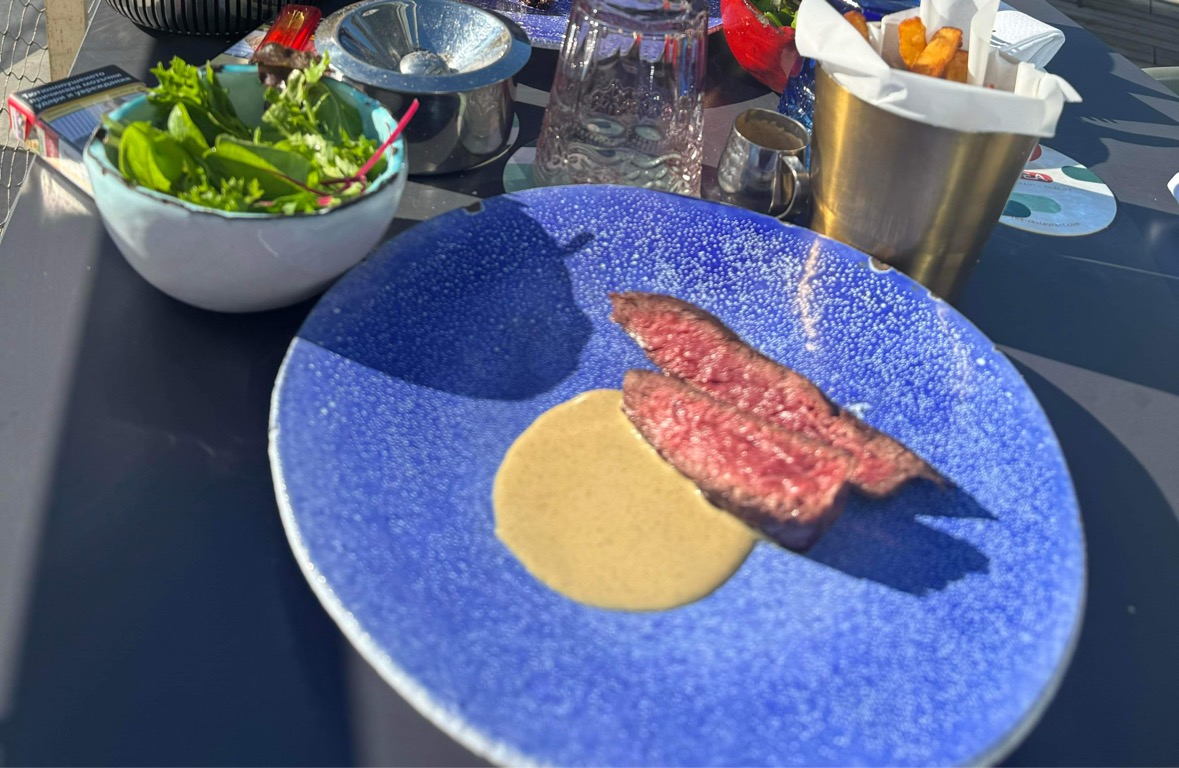 Déjeuner sur le pouce très sympathique, pendant une journée shopping. 71€ a deux pour 2 tartares, 1 brick aux blettes, 2 sodas, 2 cafés. Je trouve ça particulièrement honnête vu la qualité des produits, tartare au couteau bien équilibré en goût et texture, brick pas grasse et savoureuse avec son yaourt à la grec, mention spéciale pour les frites qui accompagne le tartare. Équipe agréable, avec le sourire et au petit soin des clients. On reviendra lors de notre prochaine balade shopping c’est sur, j’oubliai le cadre chic et la vue.