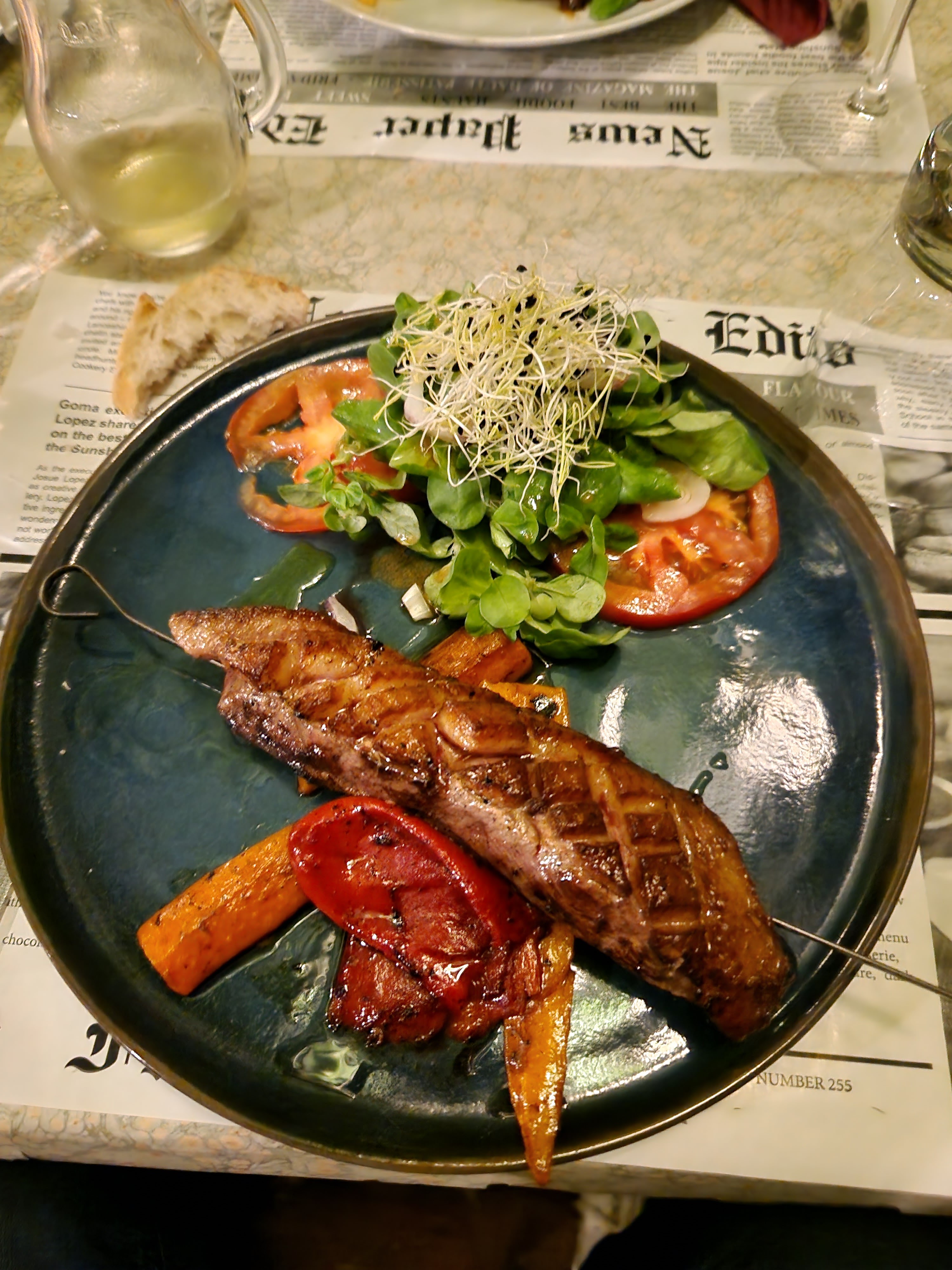 La carte ne nous disait trop rien à cause de la chaleur, le chef nous a improvisé une salade, très originale avec des produits frais, un régal!