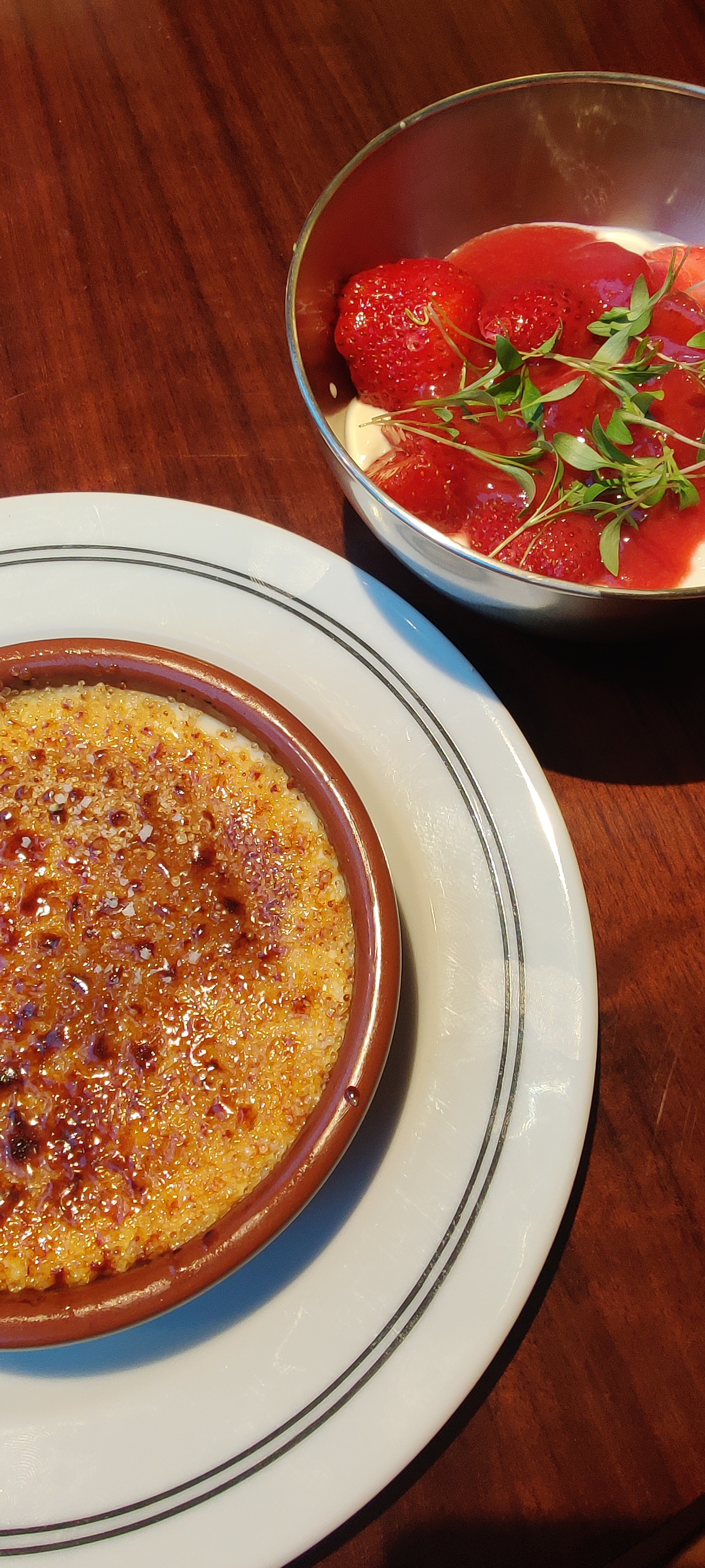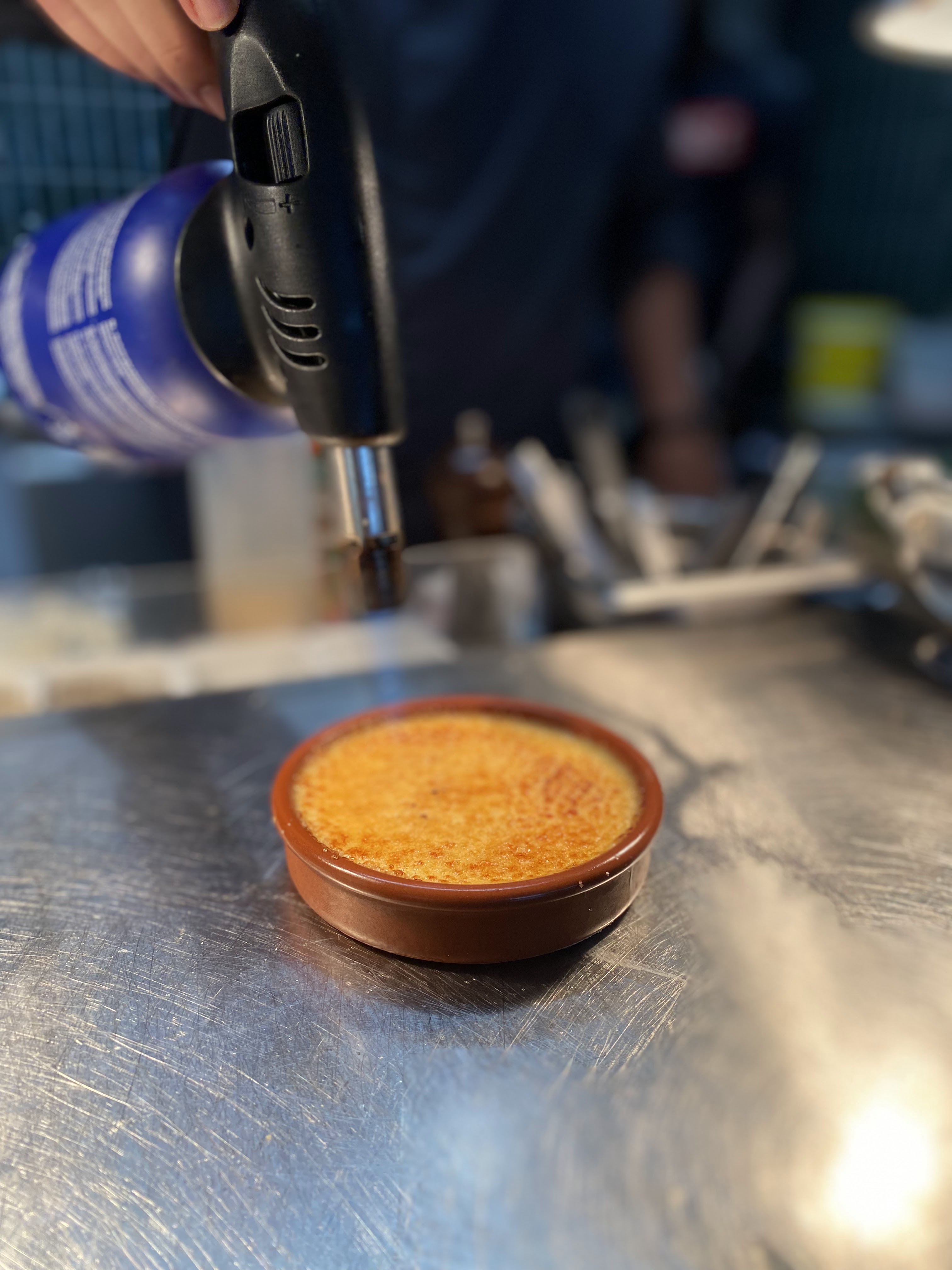 Mon veau n'était pas bien cuit. Même si le veau doit être présenté rosé, la viande doit d'abord être cuite sous vide puis saisie. Si vous faites cuire un morceau de viande épais dans la poêle sans passer au préalable sous vide, la partie extérieure sera sèche et le milieu complètement cru. La crème brûlée était insipide, elle ne contenait même pas de gousse de vanille naturelle.