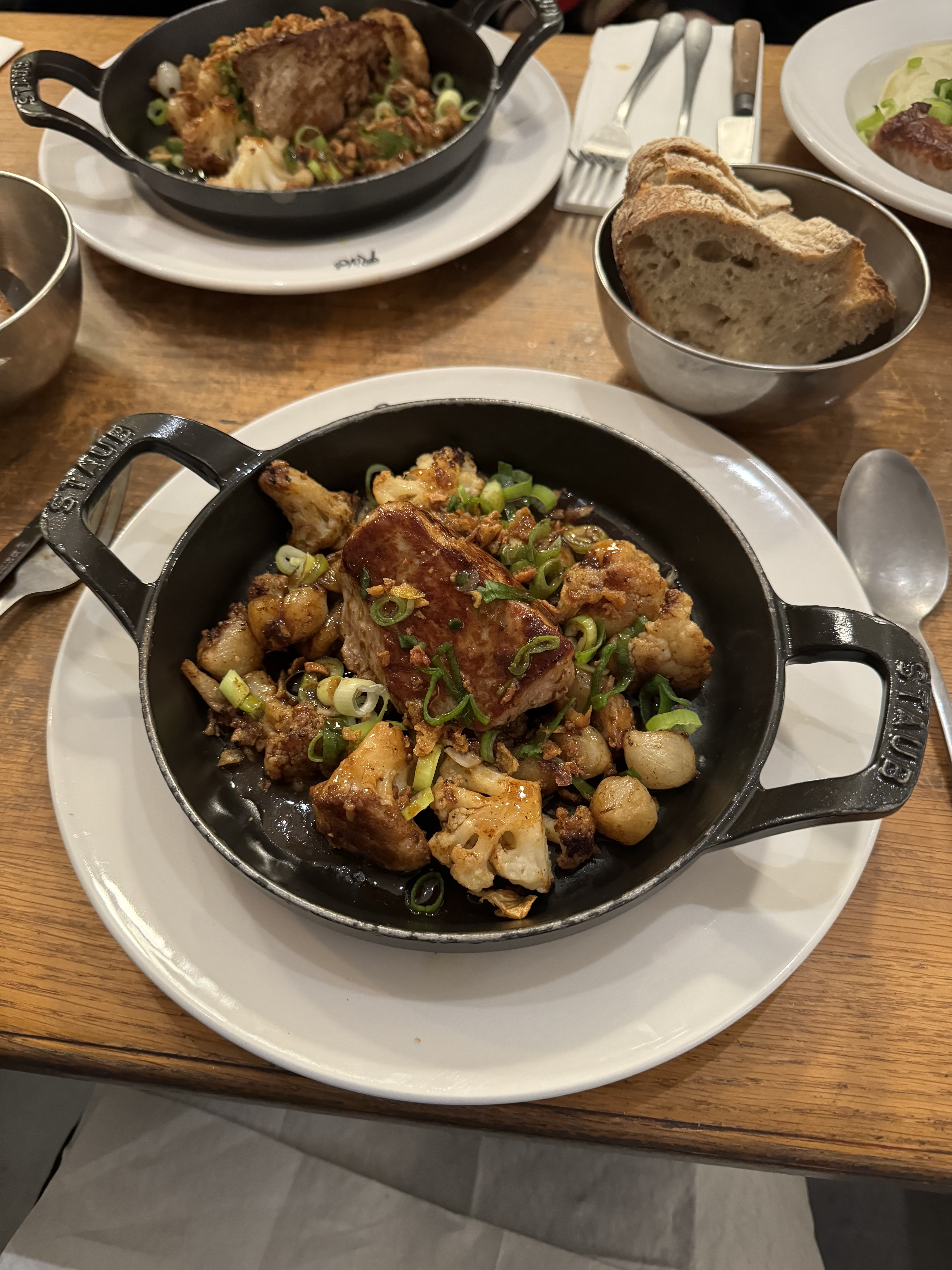 Vraiment choqué par les critiques. Pour 20 euros, vous obtiendrez une saucisse fade et une purée de pommes de terre au fromage. La nourriture manquait d'assaisonnement et n'était pas accompagnée de légumes locaux. Leur renommée semble être de donner aux clients un gros tas de frites avec leur plat. Tout le battage médiatique. Il y a tellement de meilleurs endroits dans le quartier. Je voulais ajouter une véritable critique à ce qui semble être une mer de contrefaçons. De plus, nous avons été servis par la fille aux tresses. C'était horrible. J'ai demandé des recommandations de vins et on m'a donné un regard sale même pour avoir demandé. Elle voulait juste prendre notre commande et partir. Je n’ai pas amené le projet de loi à la table. Nous avons dû monter et payer. Affreux.