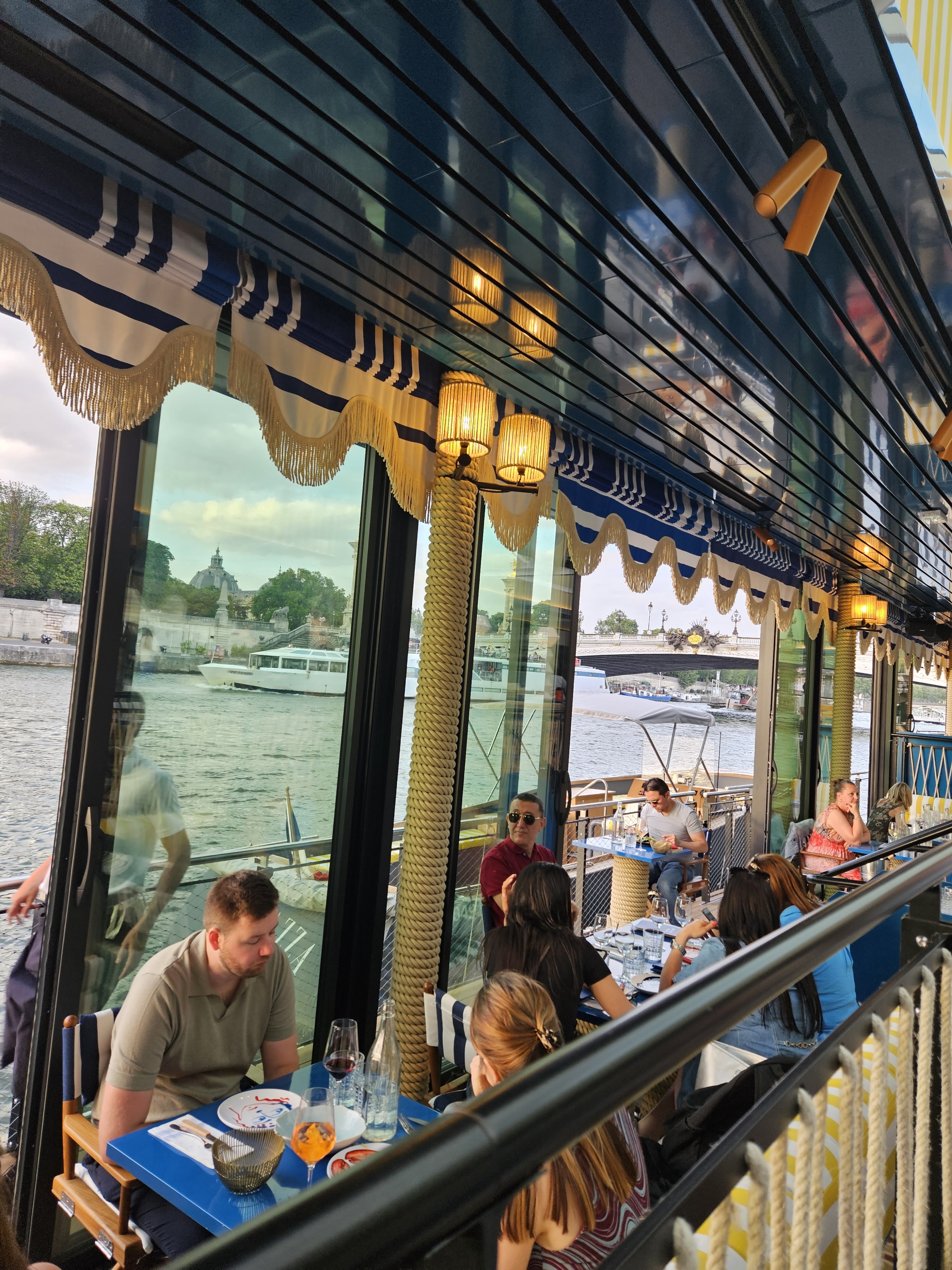 Très joli restaurant, avec une vue à couper le souffle. La nourriture y est excellente et le service impeccable. Ils se sont totalement adapté à mes allergies, en m’offrant un dessert alternatif ! Je n'ai aucune remarque négative, à part les quelques gouttes qu'on a reçues de la Seine un peu agitée ;)