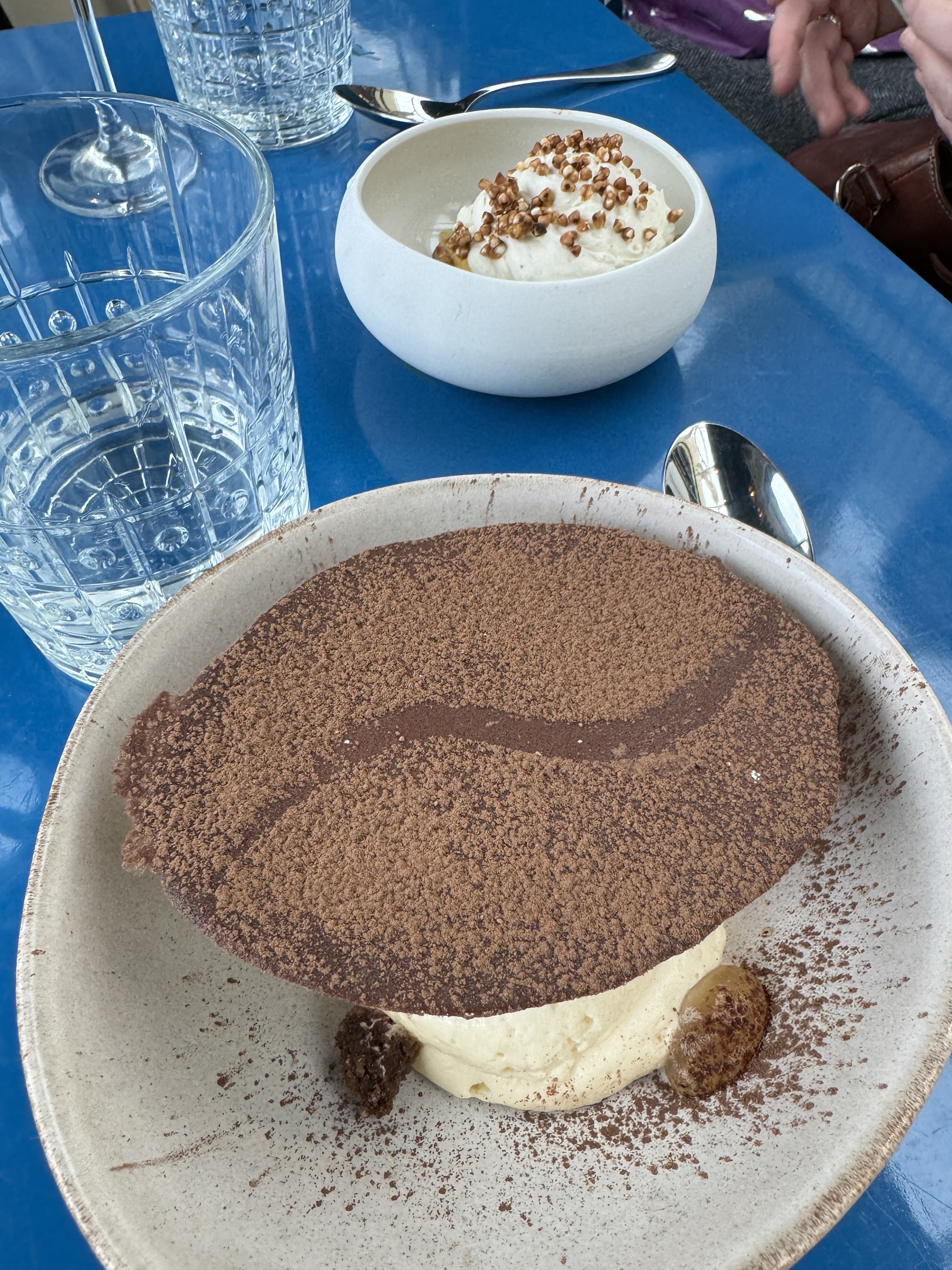 ouvert il y a seulement 2 mois… Riviera Fuga est quelque chose dont je parlerai certainement dans les prochains jours !!! c'est un resto fusion italo-japonais avec une vue imprenable sur la tour Eiffel, la seine et le pont Alexandre III. profitez de l’option de réservation et réservez une table à l’heure du coucher du soleil. nous étions un groupe de 4 et avons tout commandé pour partager. ce que nous avons commandé : pizza fritta/burrata, poulpe (poulpe), arancini, cannoli de tartare de bœuf, agnolotti, tiramisu whisky, et leur dessert du jour qui était une panna cotta au matcha — le tout très délicieux !!! 🇯🇵🇮🇹
