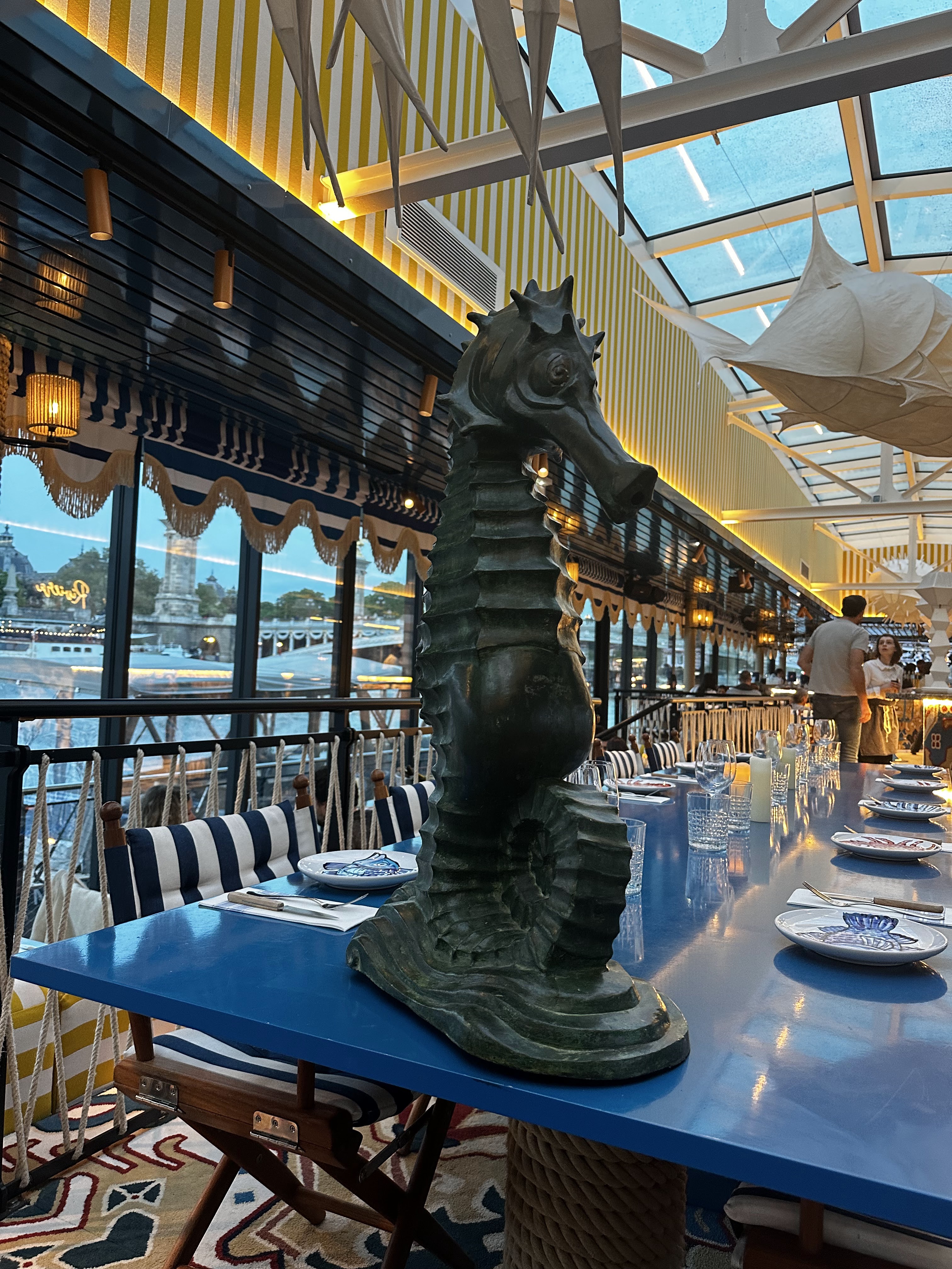 Superbe restaurant sur l'eau. Une décoration raffinée , des plats aux accords parfums et service excellent. Merci à Salim, notre serveur pour son amabilité et son professionnalisme. Nous reviendrons sans aucun doute. Et playlist géniale aussi ! Un vrai moment de délectation sue Seine