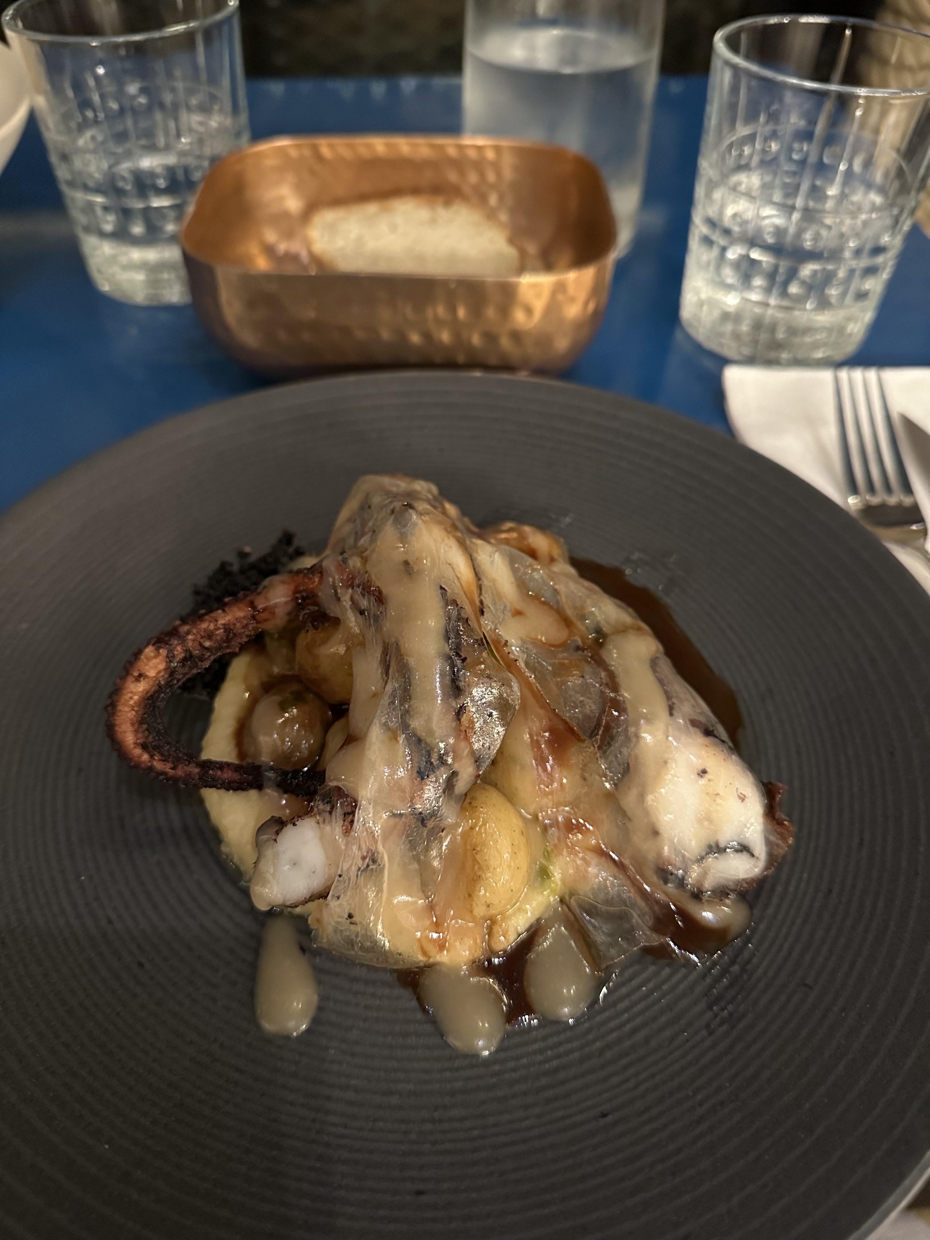 La nourriture était délicieuse ! J'ai essayé sur recommandation du serveur, c'était du poulpe avec de la purée de pommes de terre et c'était vraiment bon ! La présentation était vraiment sympa aussi! Nous avons réservé 2 semaines avant et avons été accueillis, nous n'avons pas eu à attendre !