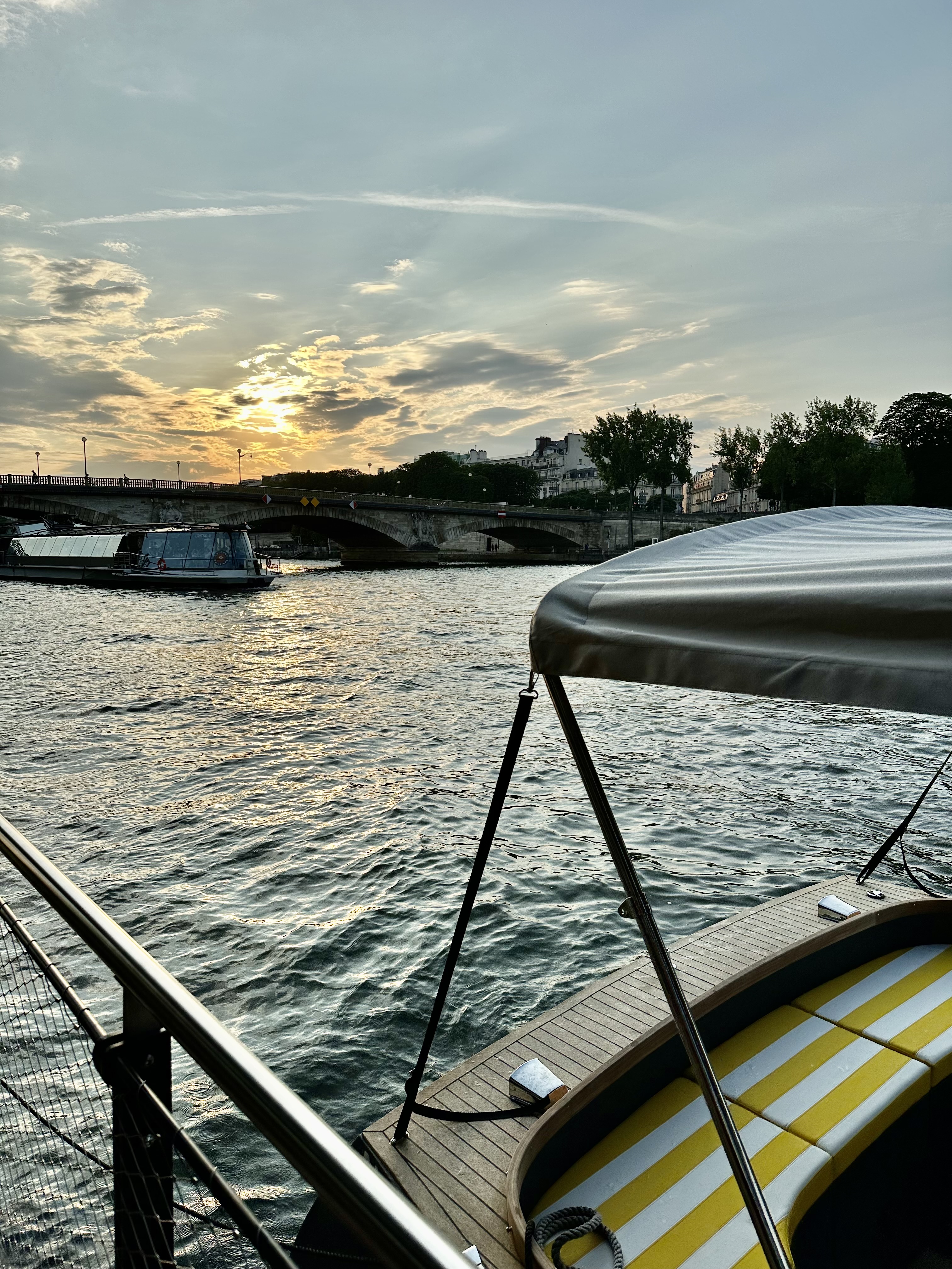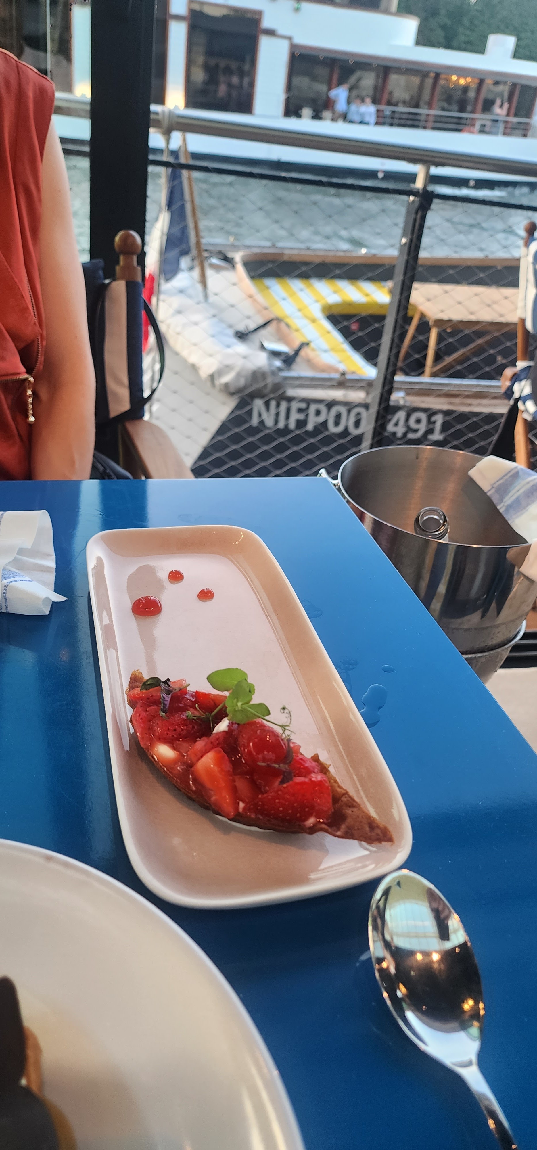 Le cadre est sublime, les plats délicieux, juste les pâtes trop al dente pour moi mais je sais que c'est de cette manière qu'elles se dégustent en Italie. Et surprise, possibilité de louer pour 1h un bateau pour une petite croisière sur la Seine. J'ai adoré.