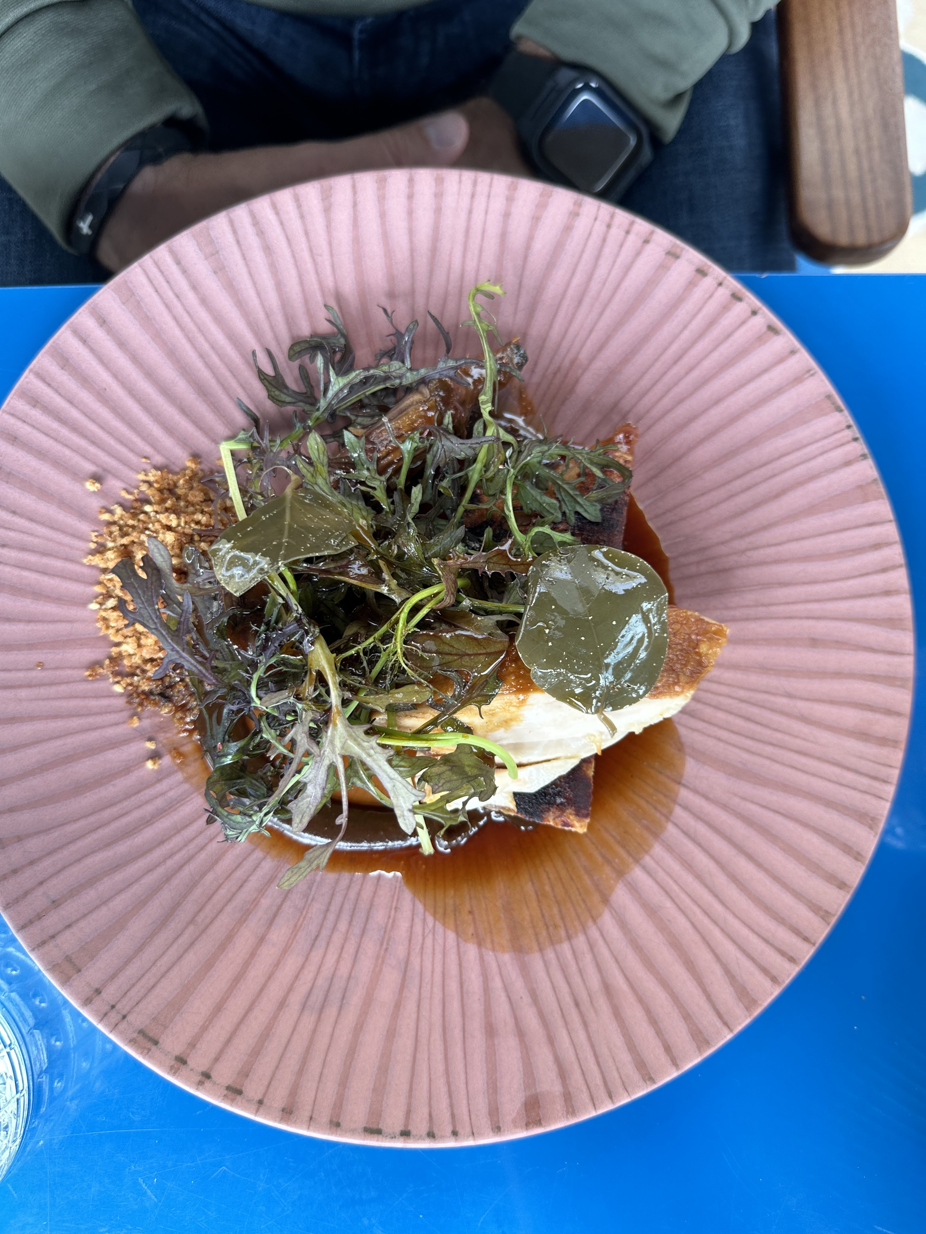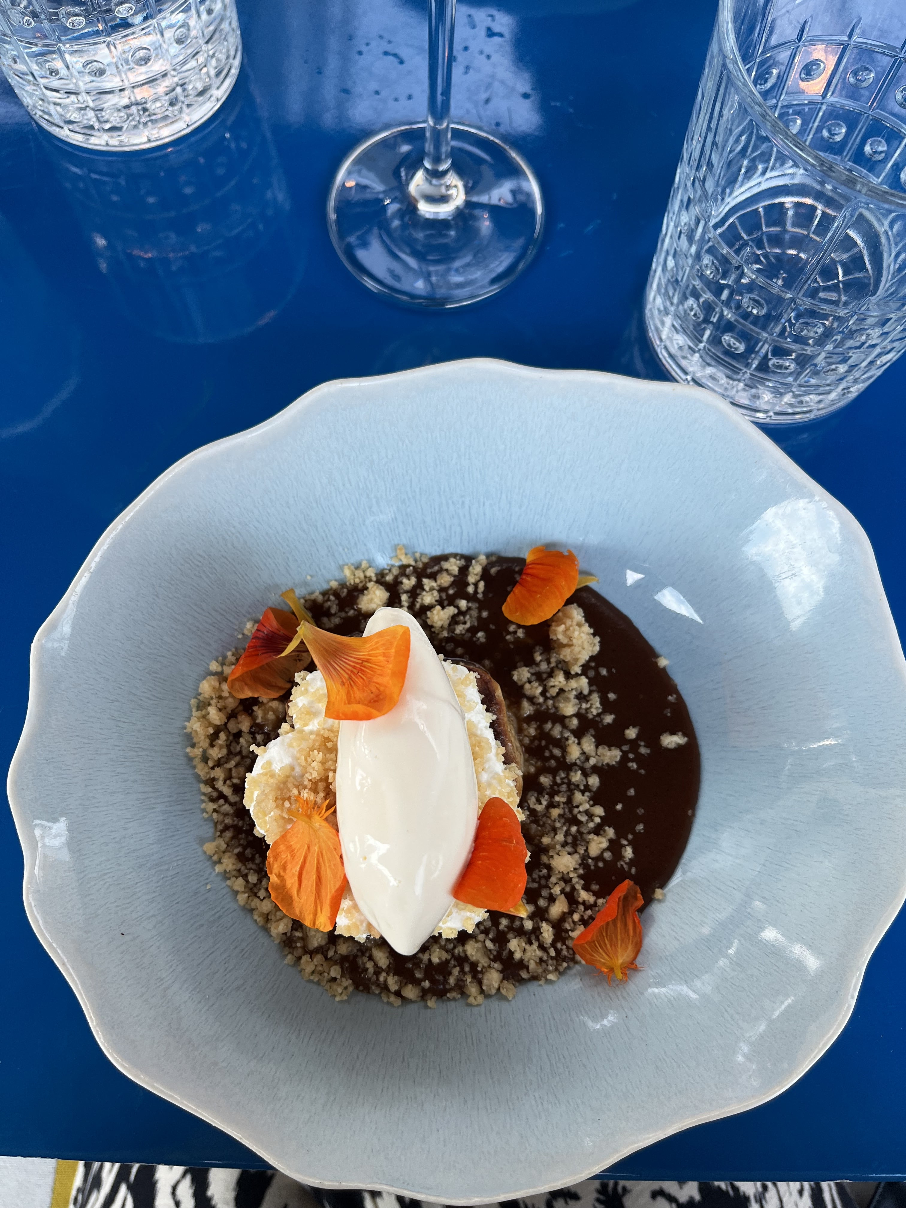 Lieu complètement idyllique on a l’impression d’avoir quitté Paris et d’être en vacances Au niveau de la carte cela se ressent également aussi, véritable coup de ♡ pour la daurade en entrée, et le poulet que de saveurs et textures ! Pour terminer un café gourmand qui change de ce que vous avez pu voir auparavant, idéal pour finir ce repas qui a été parfait du début à la fin. Déjà hâte de revenir pour essayer le reste de la carte !