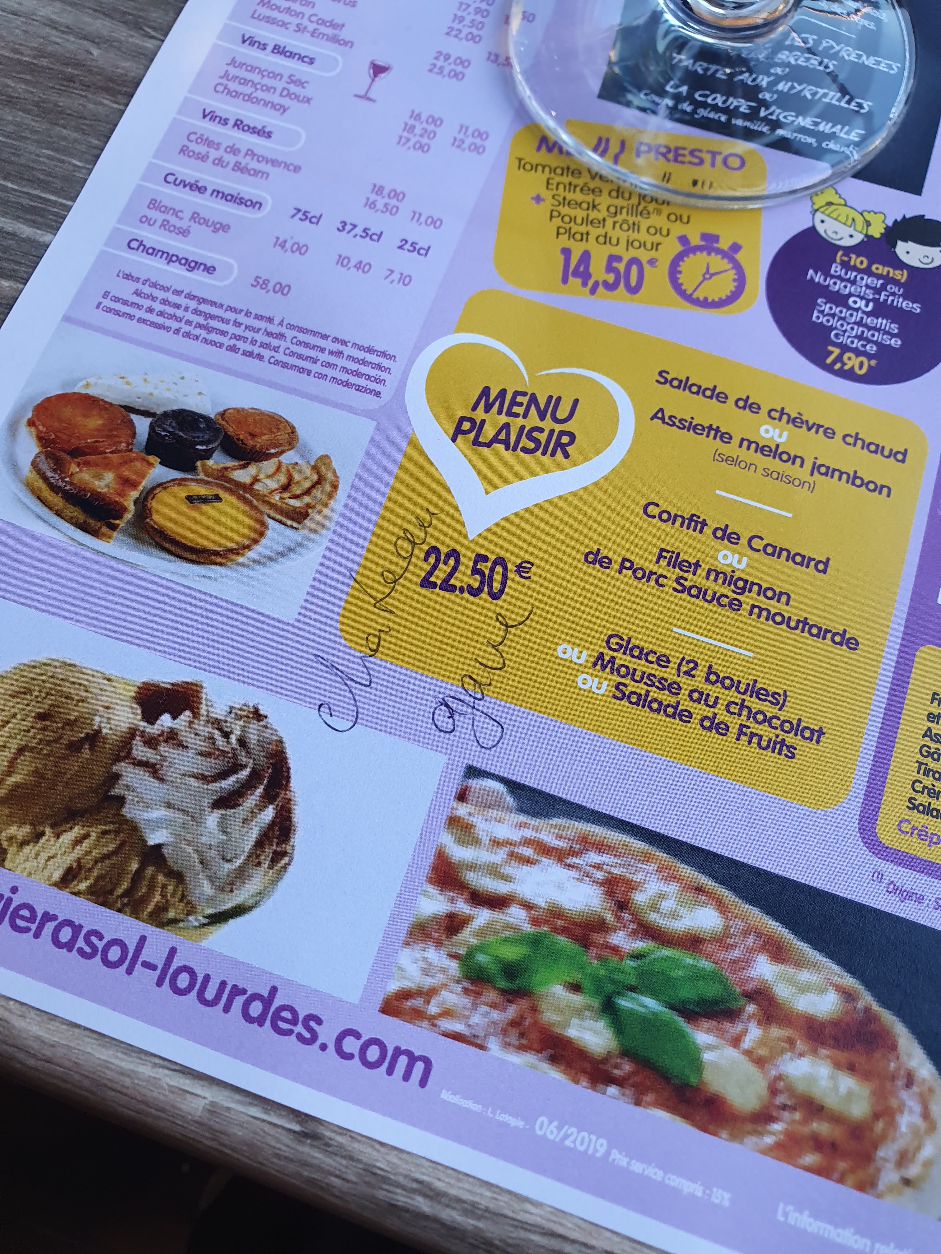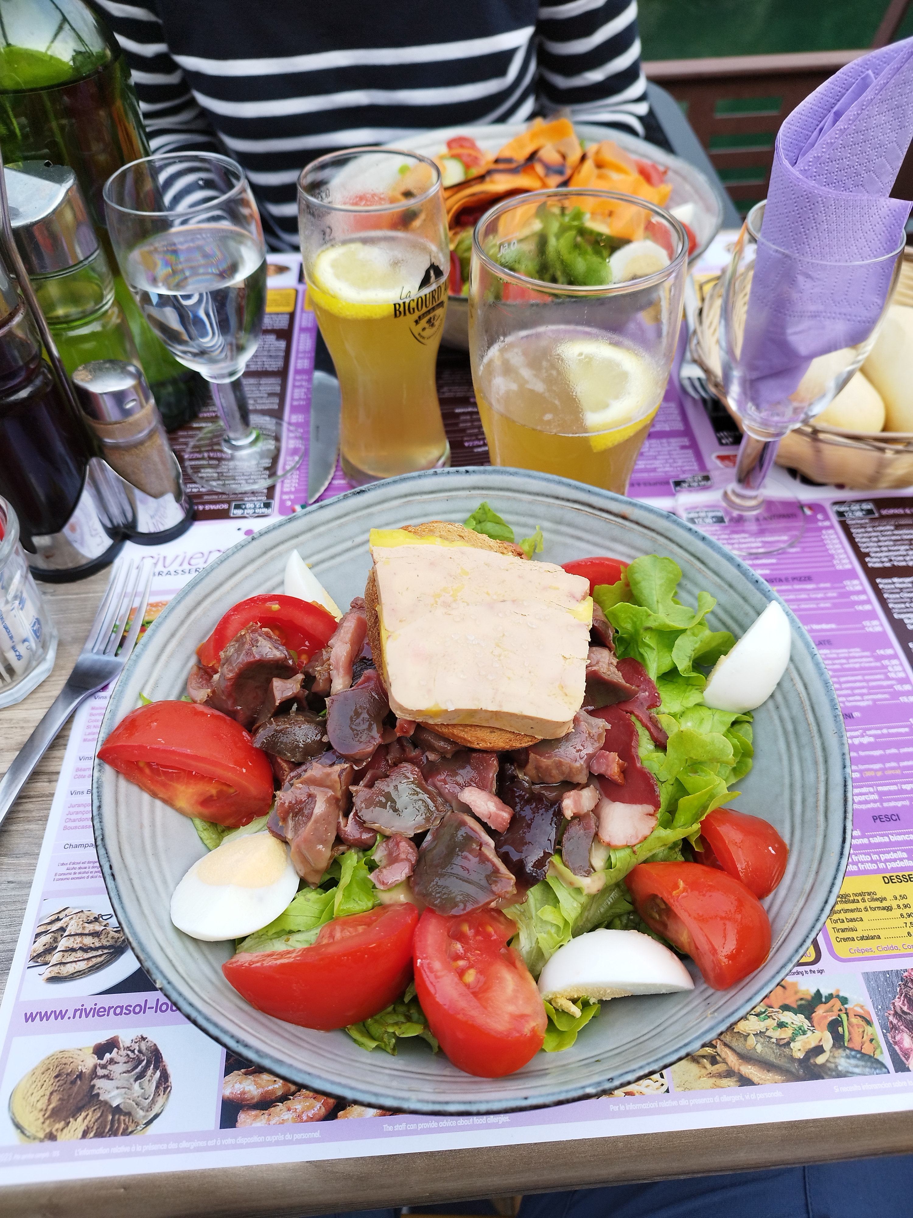 Décevant: prix assez élevé, salade pas vraiment réussie... salade fanée au fond de l'assiette... gésiers mal préparés.... Sur notre sejour à Lourdes c'est le repas le plus cher et celui où l'on ne s'est pas vraiment régalé. Dommage ! Je ne recommande pas....