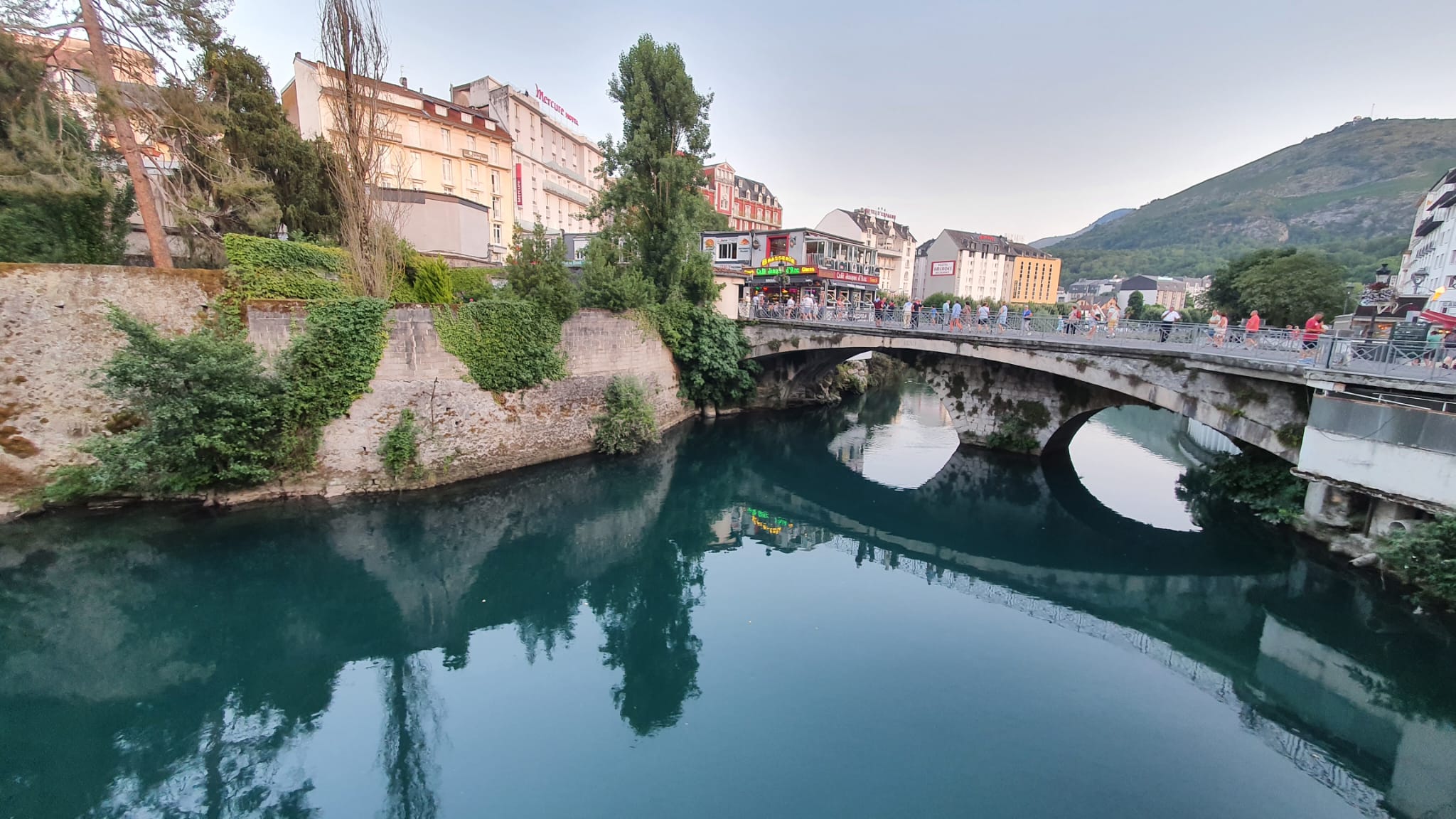 Idéalement situé sur le bord du gave Personnel très sympathique. Petite brasserie. Je recommande