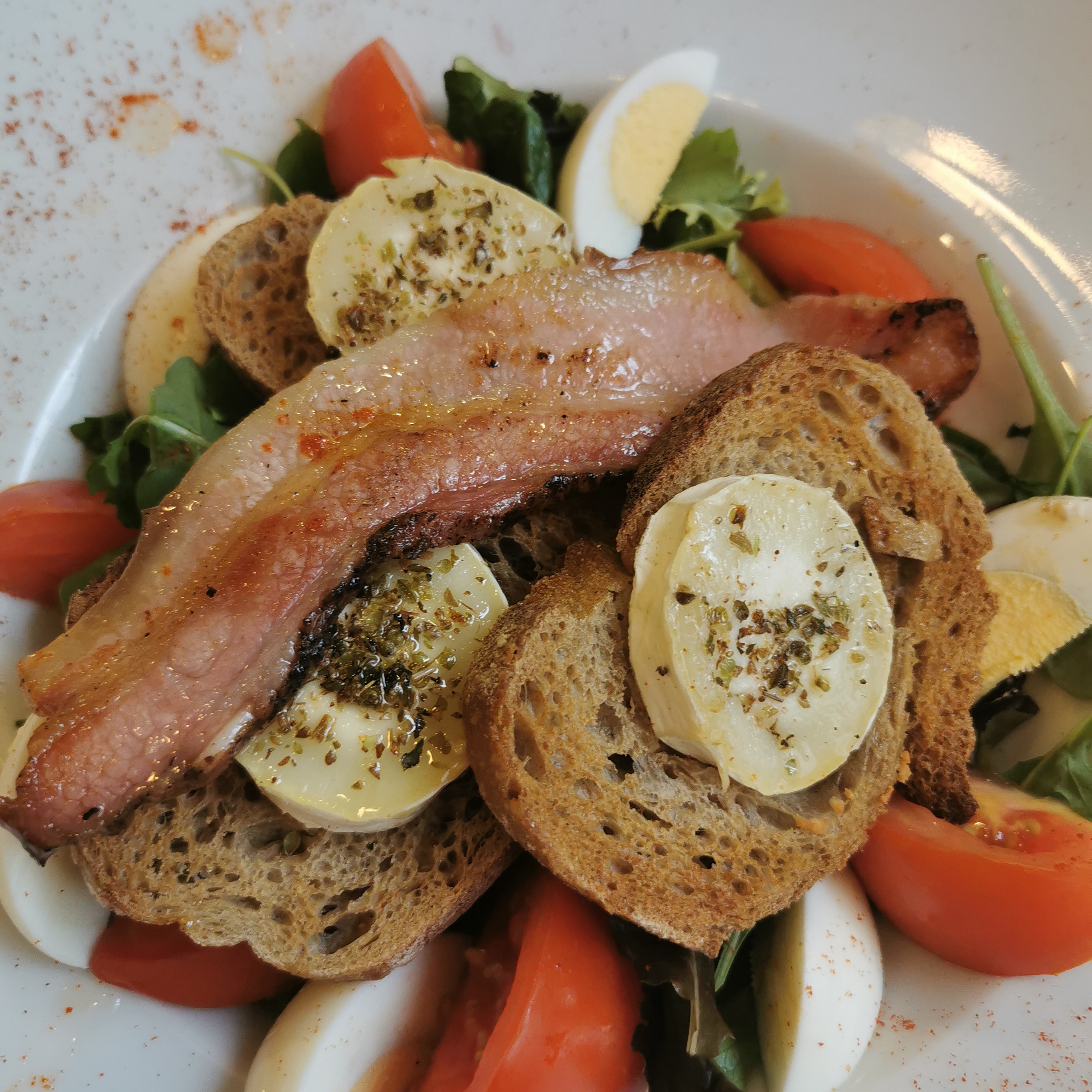La pizza la plus pourrie que j’ai mangé. Une Cesar salade de base avec une sauce douteuse. Ici la France c’est surtout pas le pays de la gastronomie surtout quand on arrive d’Espagne. En revanche les prix sont vraiment français, c’est-à-dire trois fois trop cher, faut retourner en Espagne et au Portugal plus souvent pour comprendre. Le serveur était très sympathique