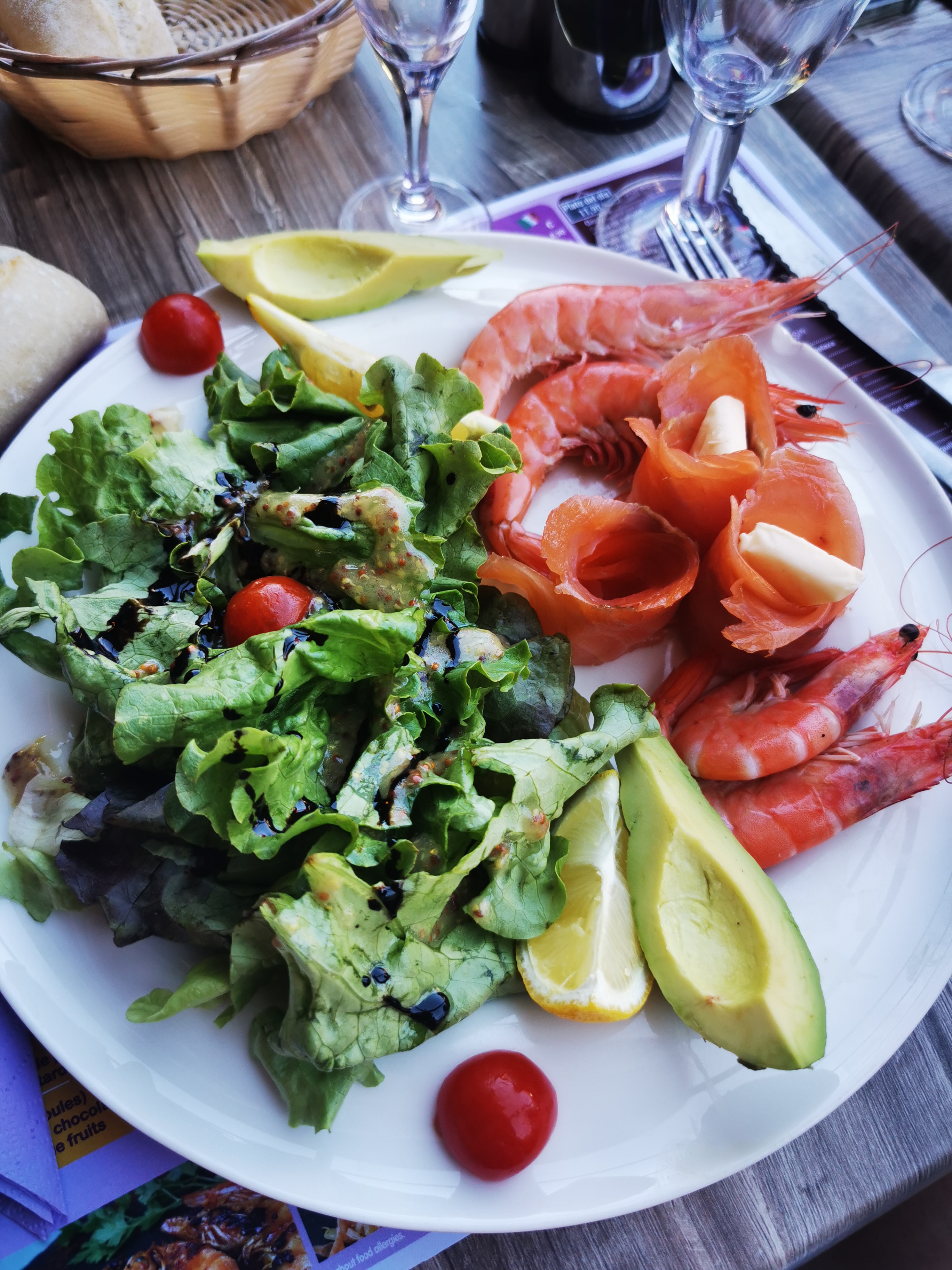 très beau choix de plats, j ai pris une poêlé de saint-jacques, un peu trop cuit, dommage. Très belle vue en terrasse, service à table un peu long, mais bien dans l ensemble.