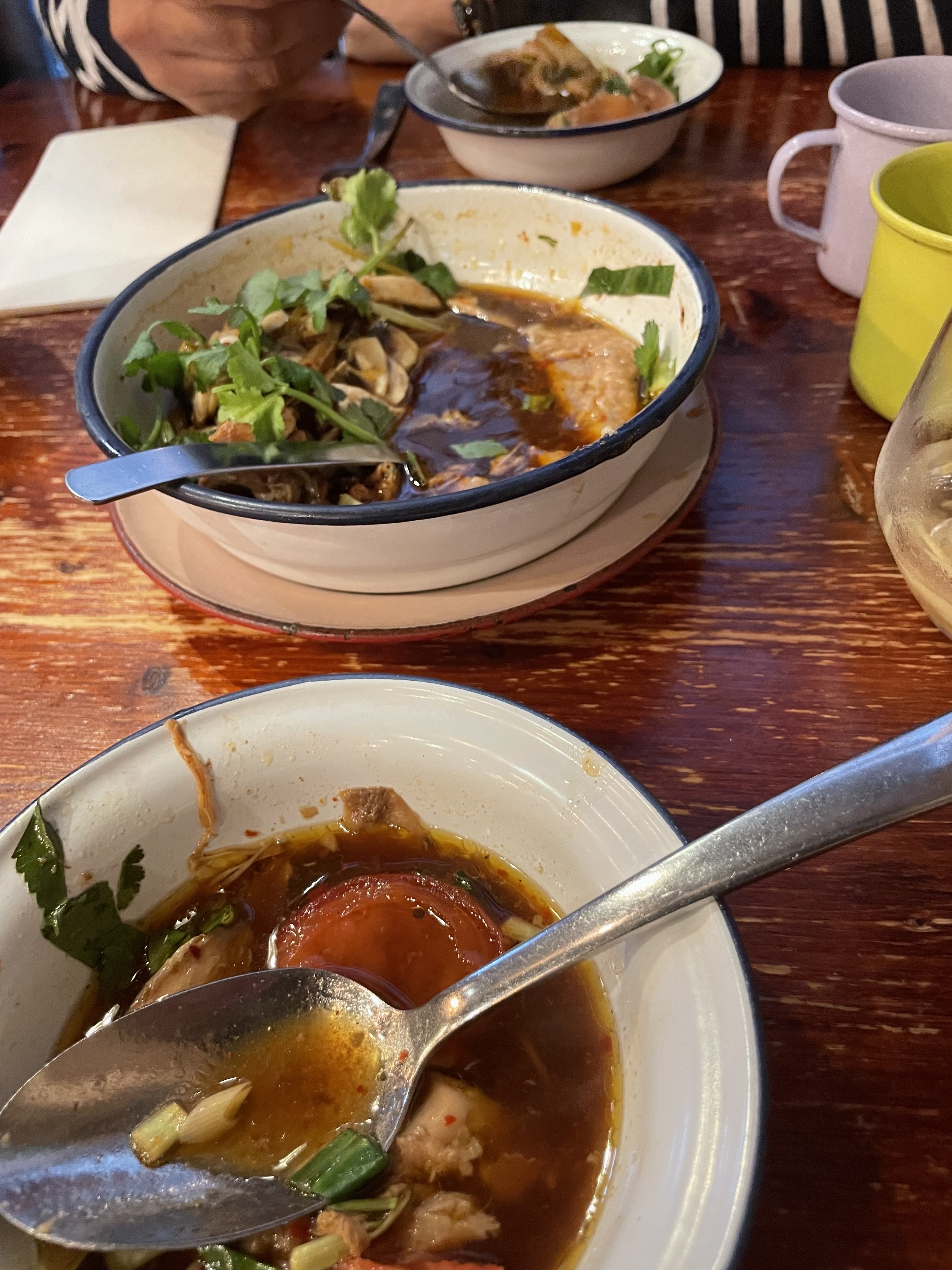 8 euros pour un pauvre bouillon et littéralement 3 crevettes dedans. Une honte. Je suis allé réclamer un geste, le seul geste qu'ils m'ont accorder c'est de me rajouter du bouillon (de l'eau salé clairement). C'est leur politique de Mettre 3 crevettes uniquement. Et ça également pour le pas thaï. C'est du vol, je vous déconseille fortement ce restaurant. A fuir !