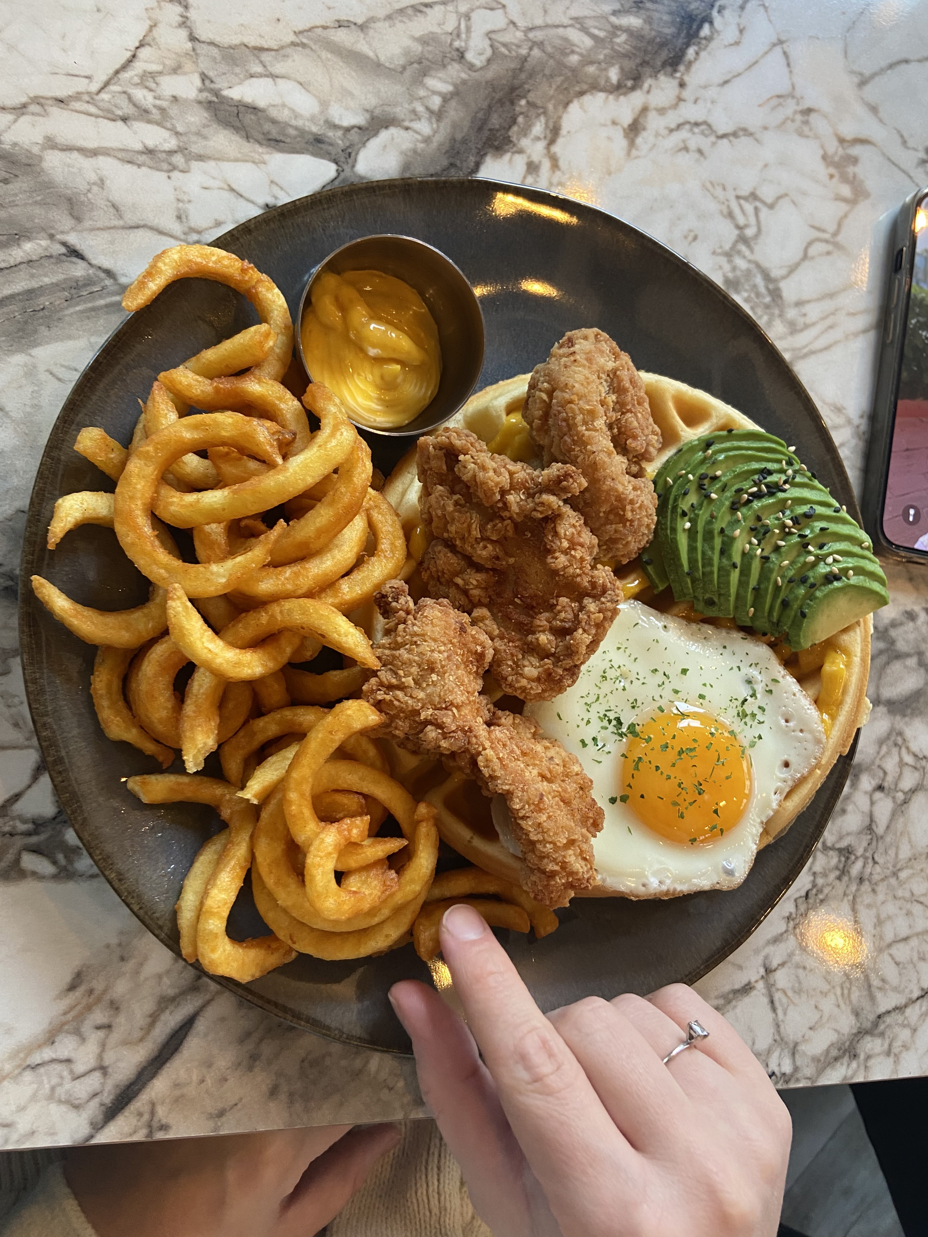 Restaurant au top avec un joli décor beaucoup de choix et de la nourriture de qualité. C’était vraiment super bon je vous recommande. Particulièrement la gaufre salée avec poulet frit et avocat. Je reviendrais
