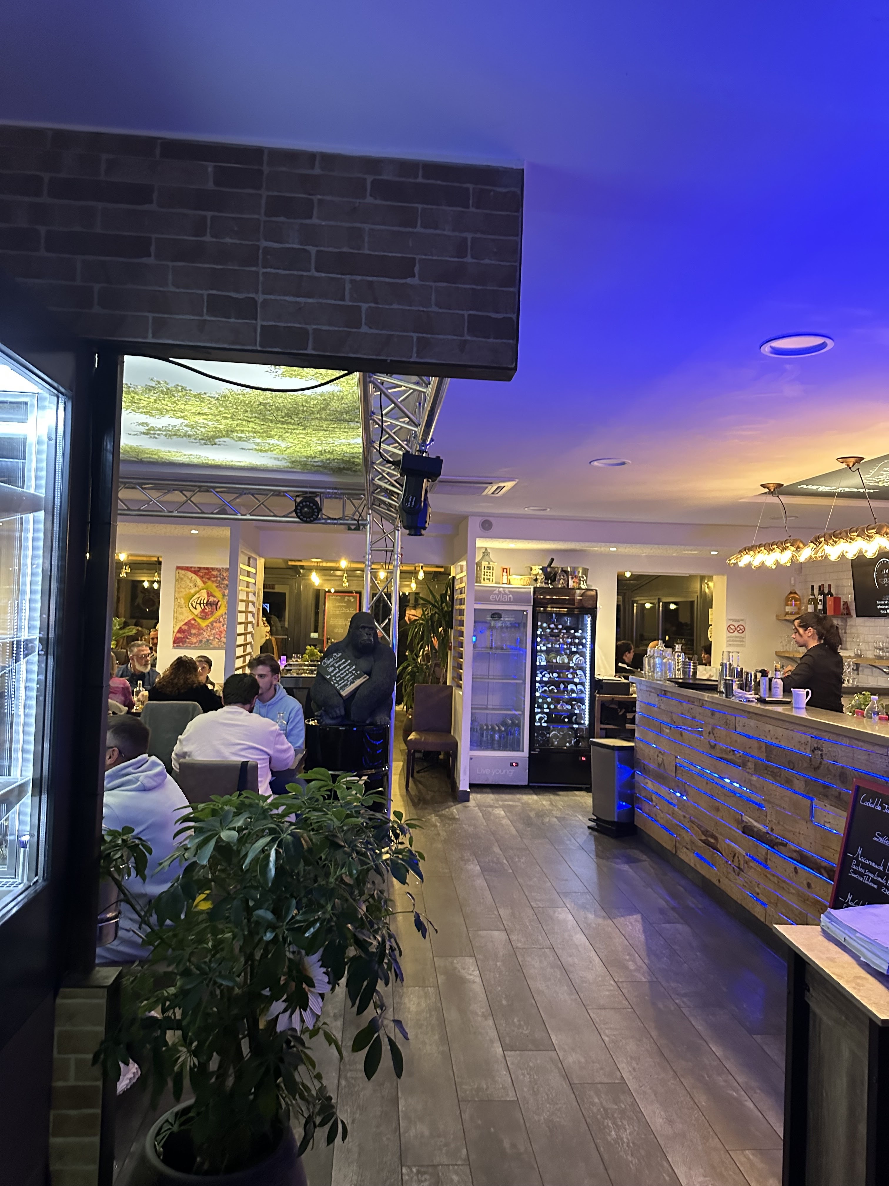 Meilleur restaurant de la zone. Nécessaire et indispensable. Nous renouvelons l'expérience à 7 convives en semaine 44. Très bon rapport qualité/prix. À recommander. Attention petite baisse de la qualité de la viande sur les trois derniers repas. Une barmaid exceptionnelle dans une gamme de cocktails de grande qualité. Baisse de la qualité confirmée... malheureusement.