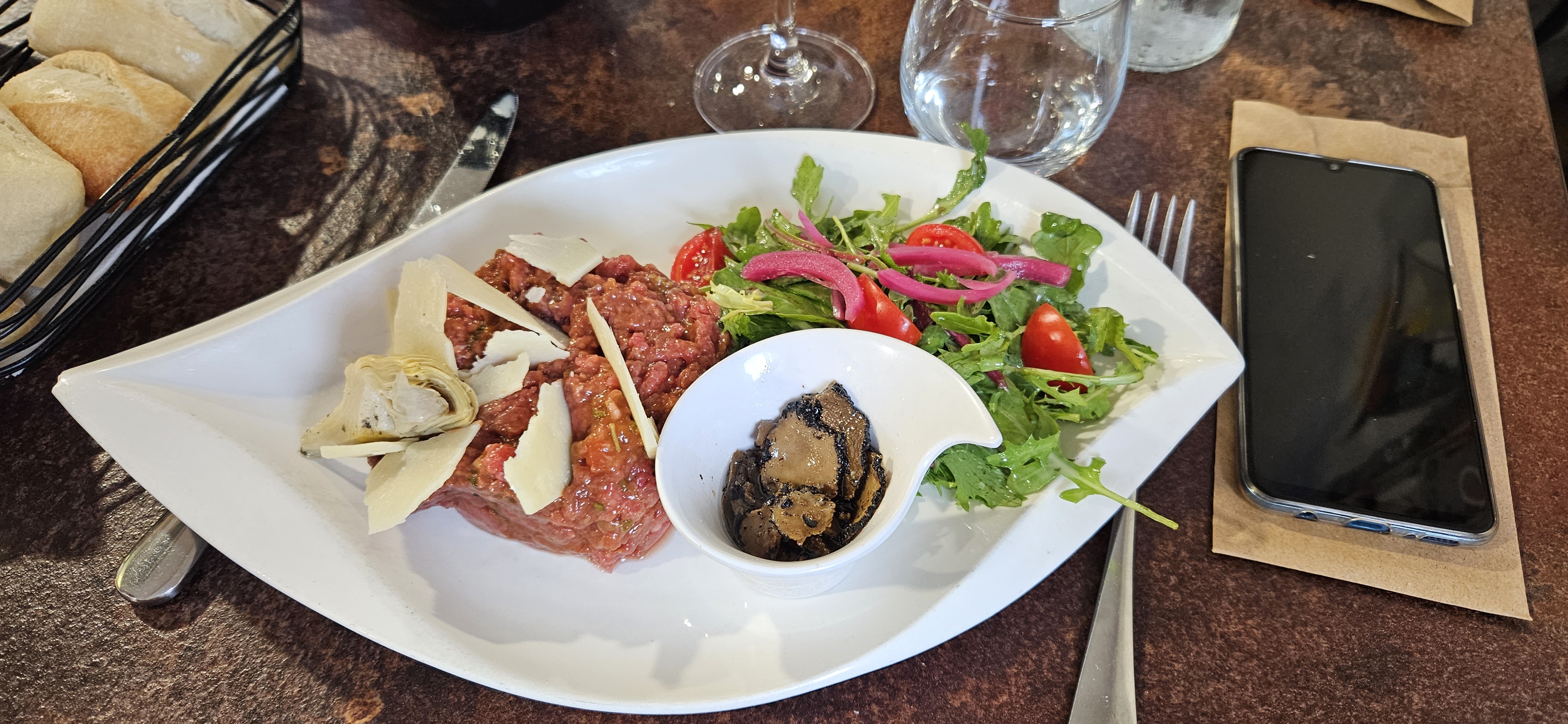Nous étions 5 et 100% de ce que nous avons mangé était excellent, copieux, frais, plus une miette dans l'es assiettes !!! Je recommande, nous reviendrons !!