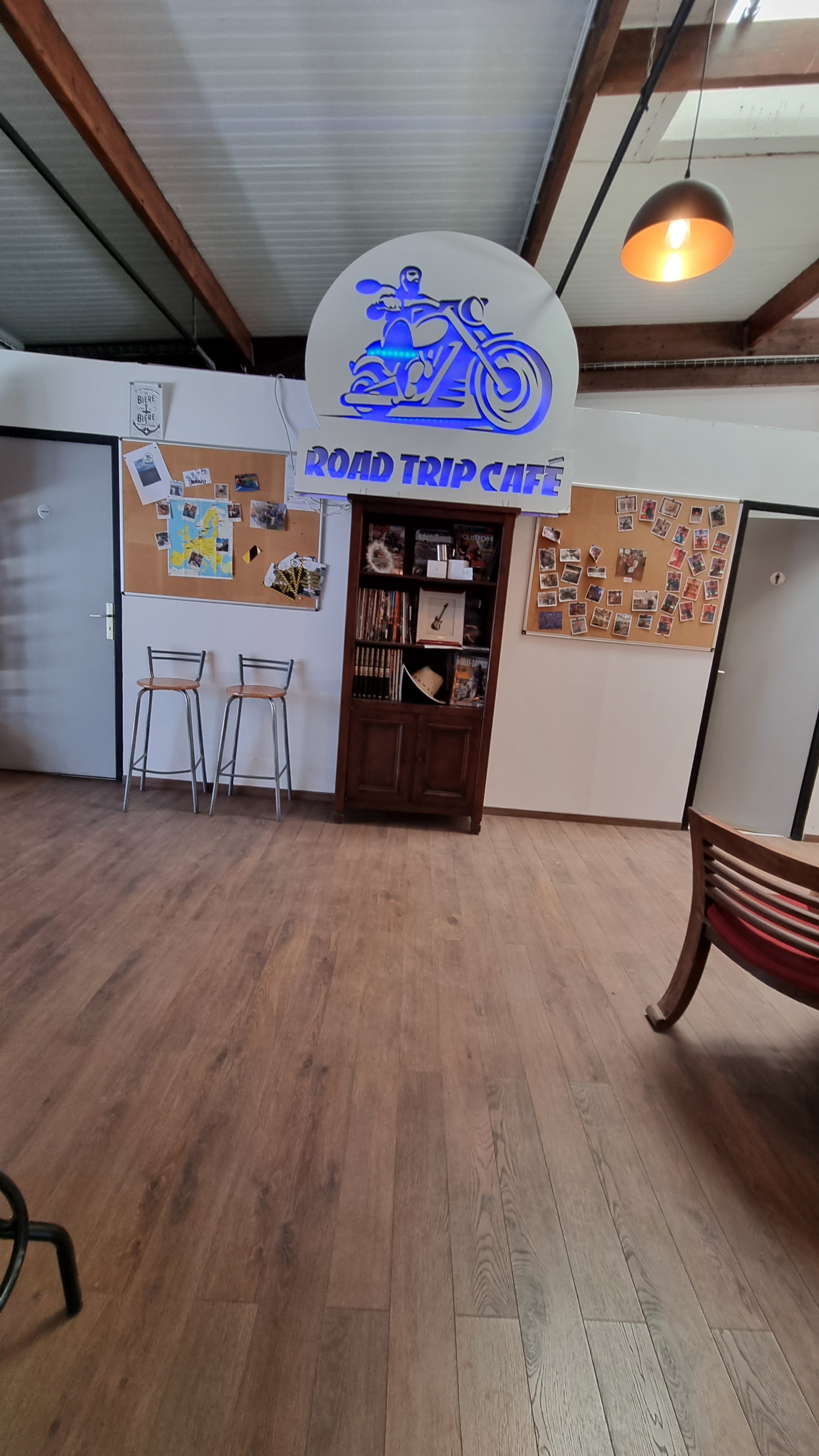 Très bon accueil, y compris pour des groupes (comme le mien hier soir). Bonne ambiance dans un décor qui mérite d être découvert pour toutes celles et tous ceux qui sont passionnés pour la moto ou pas. Le tandem food truck - bar d ambiance fonctionne admirablement, le tout pour un budget très raisonnable. JE RECOMMANDE ! Bravo aux équipes qui œuvrent au quotidien pour faire vivre le Road Trip Café ☕