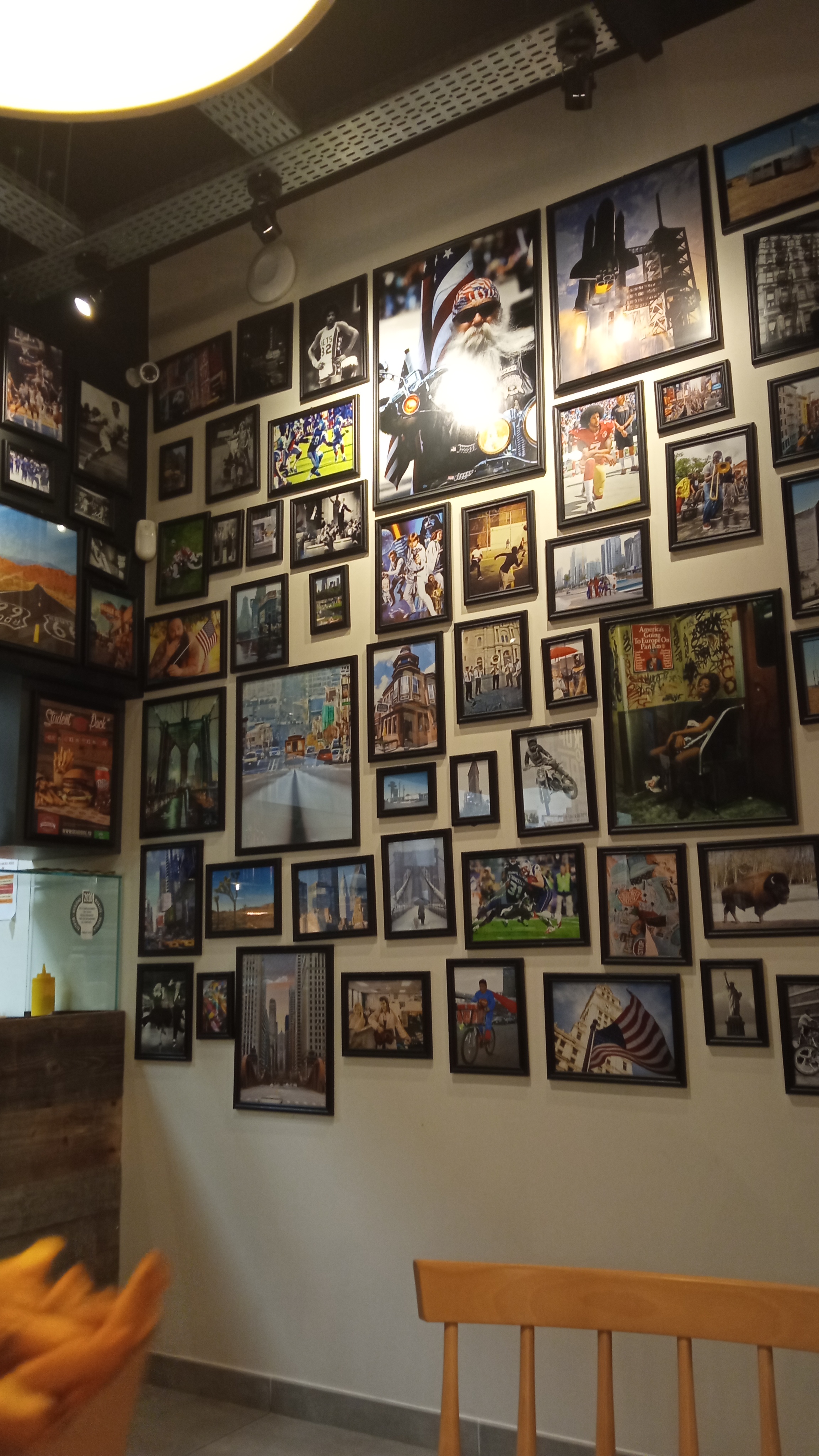 Restaurant très bien décoré avec des photos de l'Amérique avec un personnel de qualité et agréable. La nourriture est excellente nous pouvons manger sur place ou à emporté. Je conseille fortement.