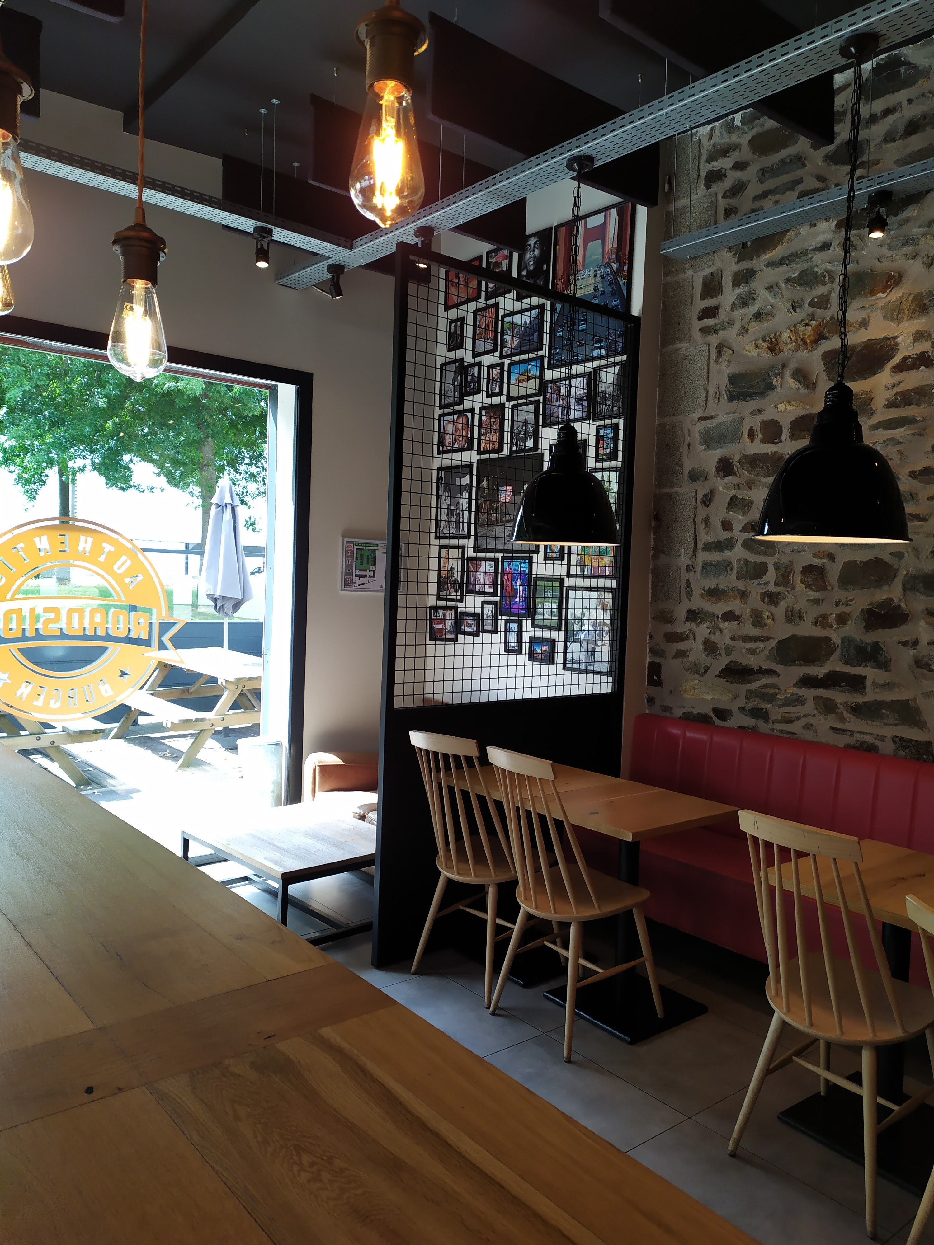 Le lieux est chaleureux et plein de charme façon à l'américaine. Il y a en général pas trop de monde donc pour les gens qui n'aime pas trop les foules en mangeant c'est parfait ! Terrasse et intérieure. Parking disponible mais un peu juste niveau manœuvre. Le service est super et la chaîne de restaurant Roadside est toujours nickel niveau goût, nouveauté et bonne surprise ! Chez eux vous ne mangerez pas un burger. Vous mangerez de l'amour !