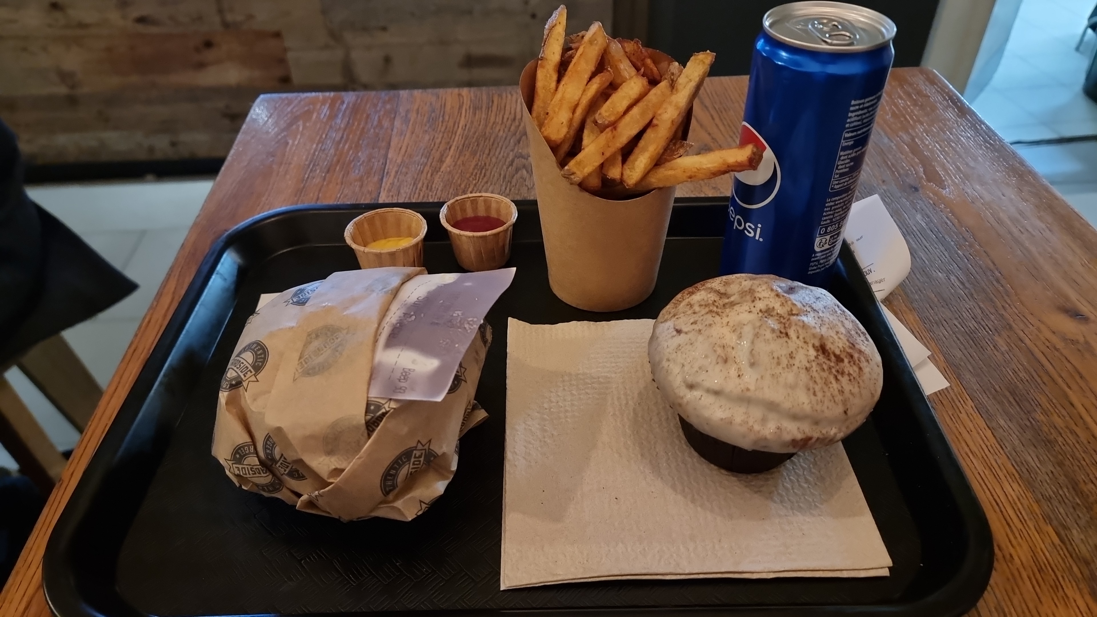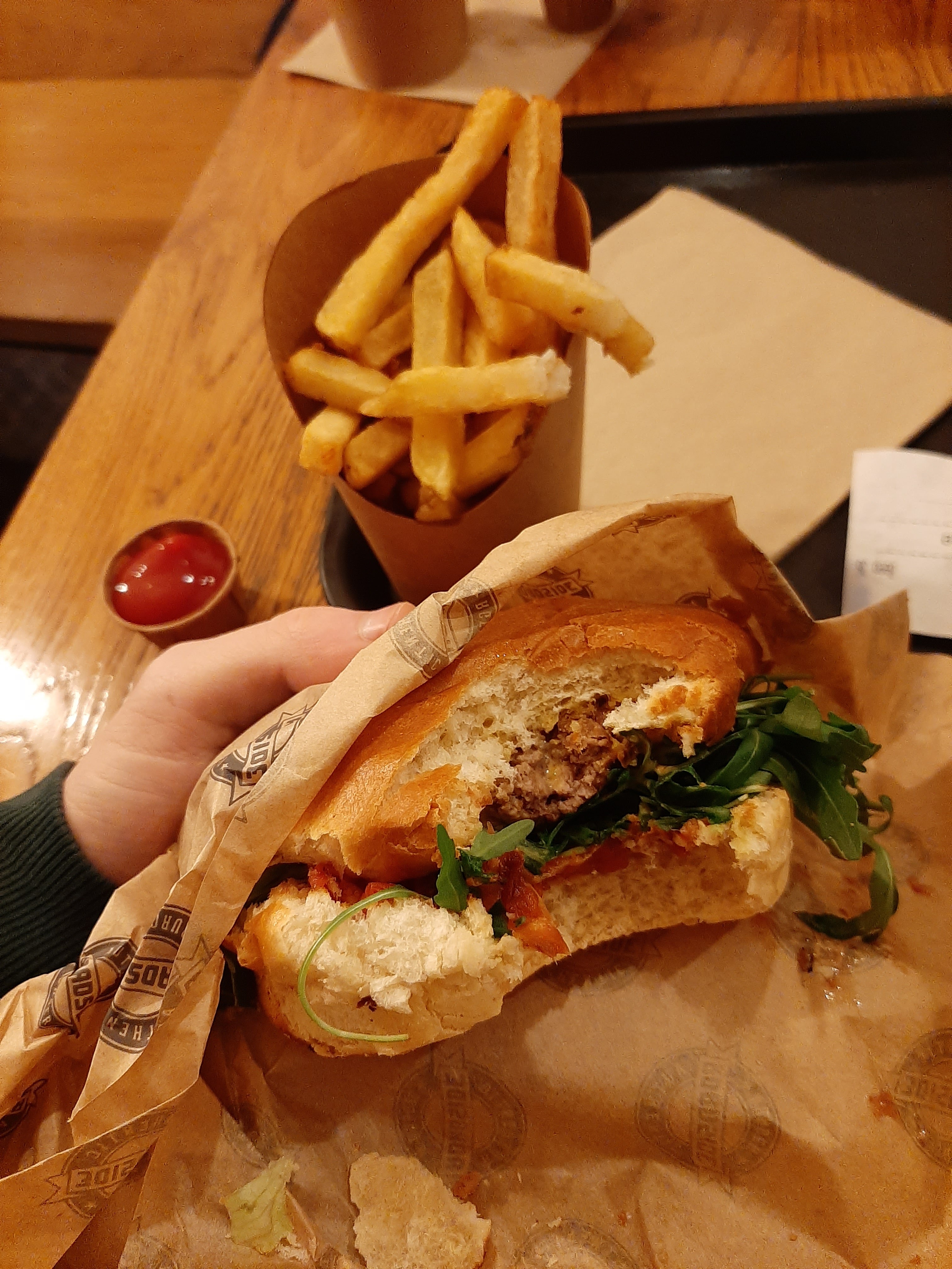 Hamburger très bon,par contre miette de frites... Sinon sympa