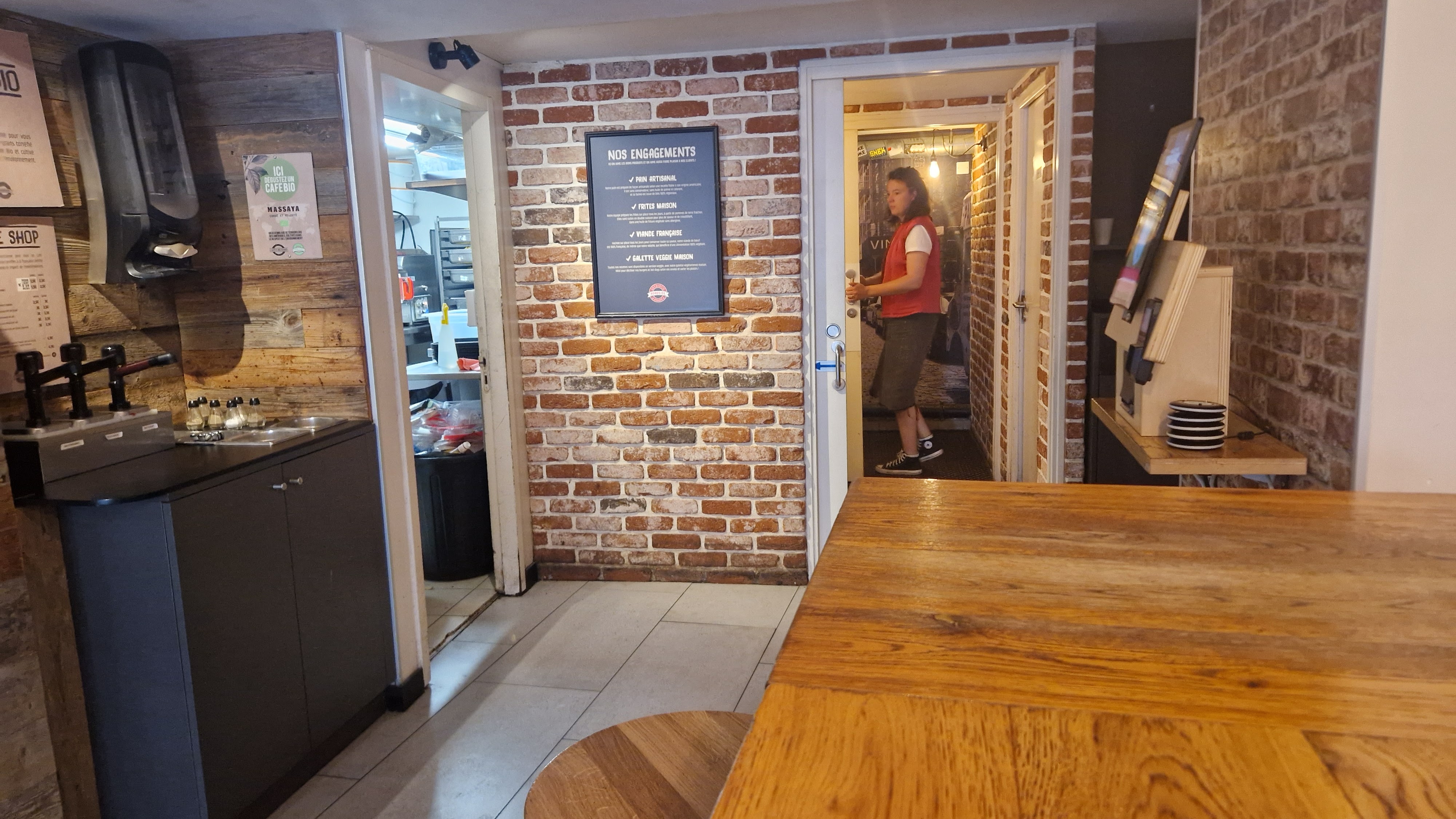 Lors de mon passage, la porte d'entrée était grande ouverte avec un froid glacial extérieur, le froid rentrait dans la salle malgré la chaleur de la cuisine.