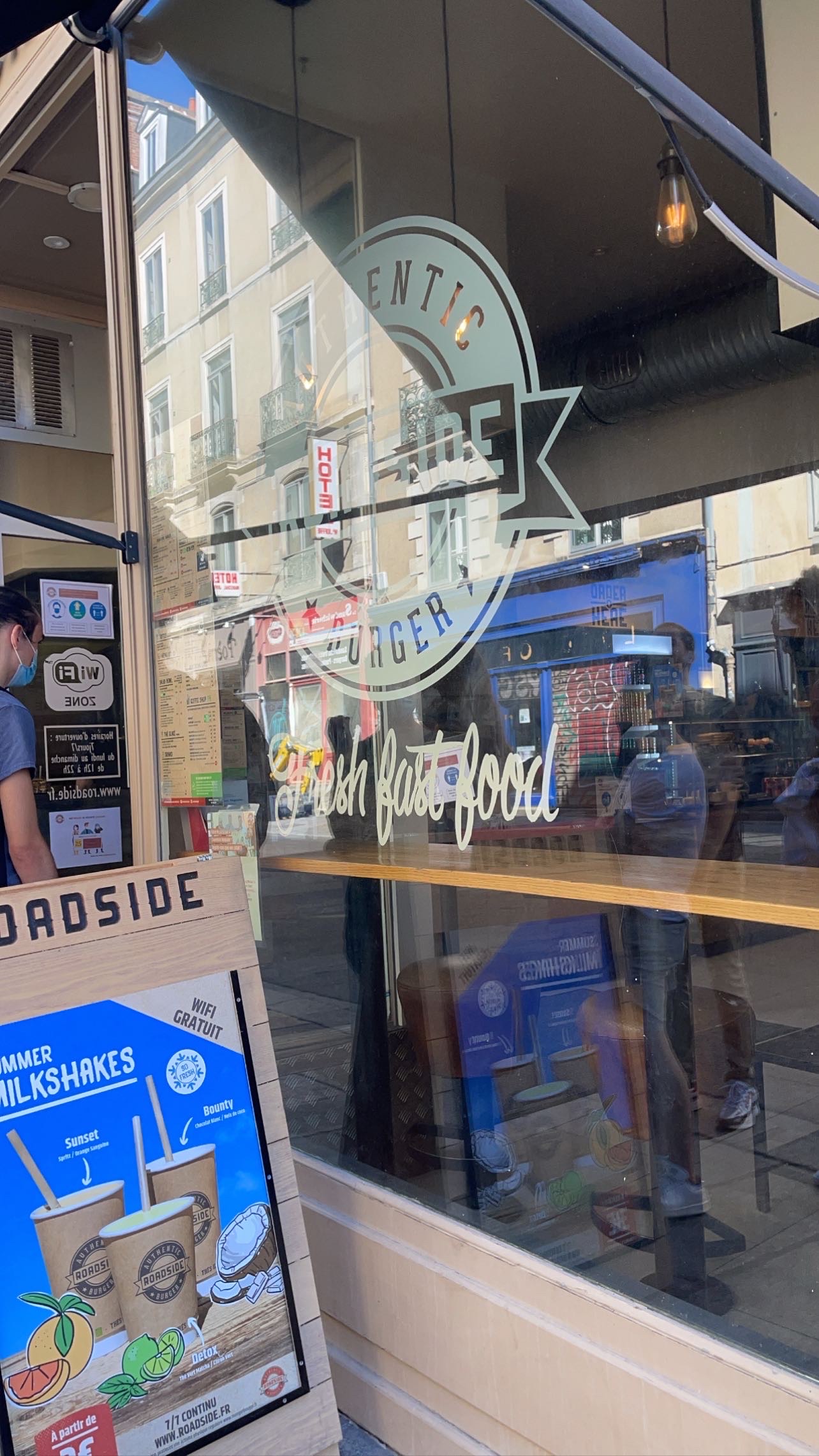 Ayant testé celui de Nantes, j'ai été surpris de voir que le Roadside de Rennes est plus grand avec des écrans pour commander (que je n'ai pas testé). 😁 La nourriture est très bonne et le lieu est sympa, tout comme les personnes qui y travaillent ! 😎🤞 Le seul point négatif que j'ai trouvé est que la musique est trop forte dans les toilettes
