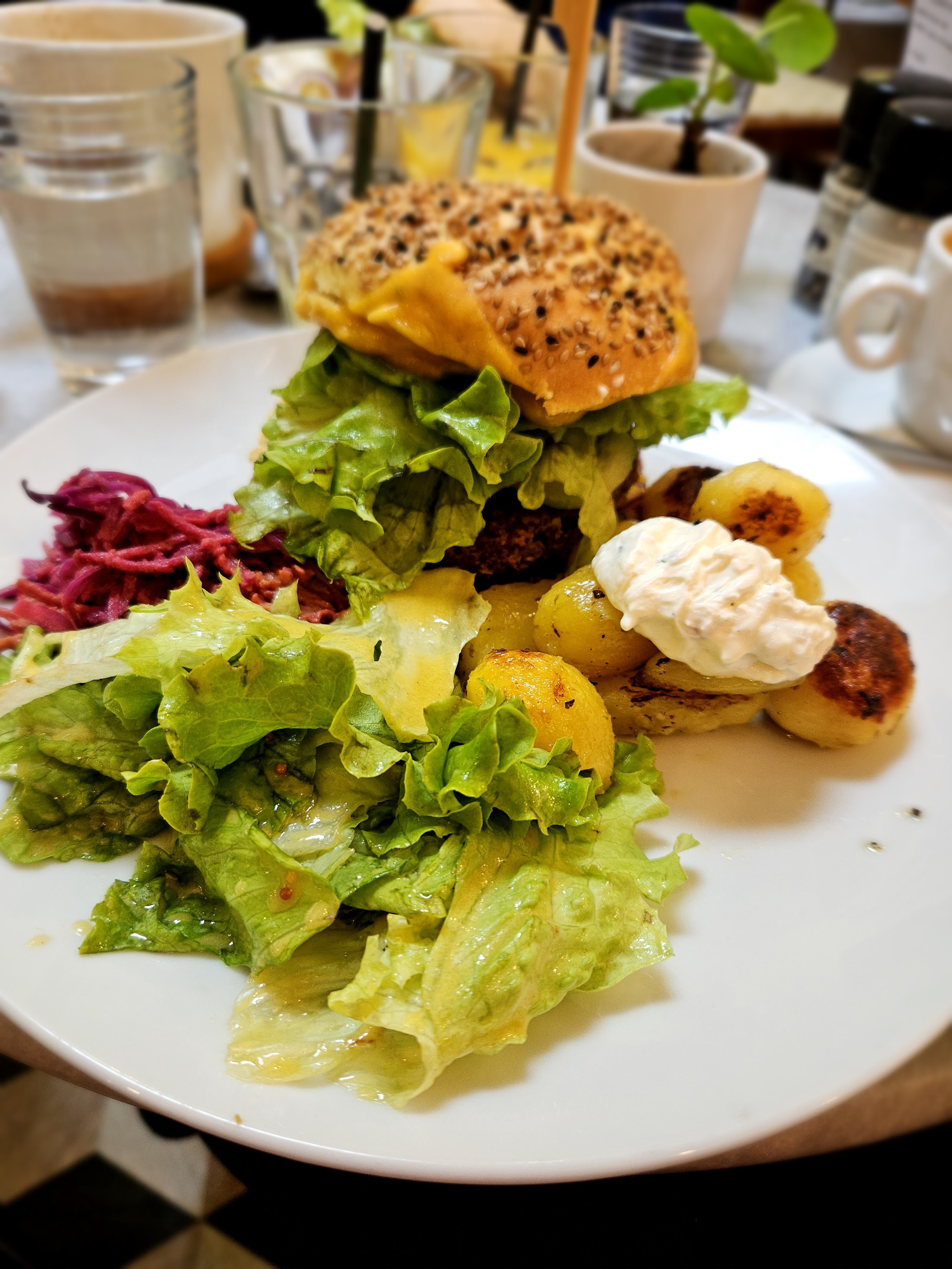 Super découverte! Étant végétarienne, ce resto était un plaisir pour mes papilles! Burger de mon côté & tarte pour mon conjoint accompagné d’une soupe de betterave, on reviendra (pour goûter le hot-dog vg)! C’était délicieux & abordable!