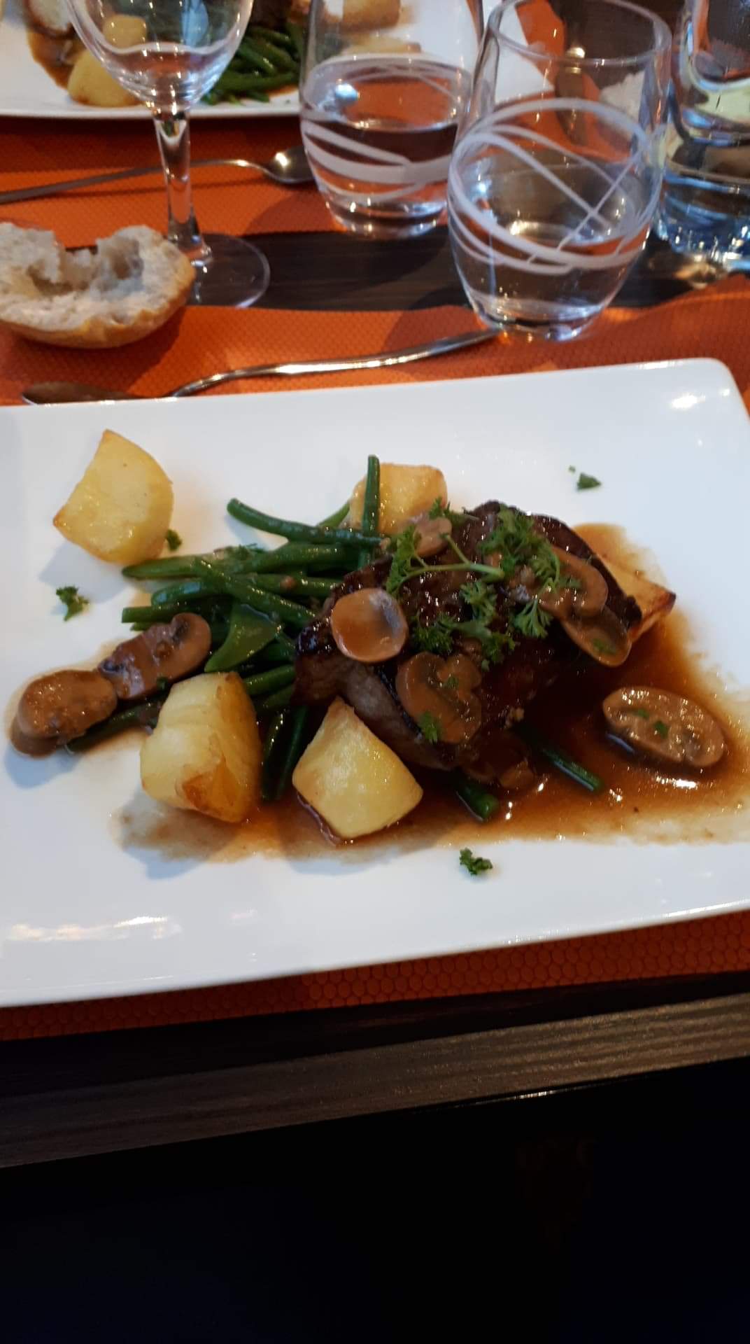 dîner entre amis ( 8) samedi 4 mars et nous avons été très satisfaits de notre soirée. Repas très bon et copieux . Service rapide et efficace . Nous étions bien placés près de la cheminée. Un seul bémol : l'ambiance bruyante . Nous avons ensuite pu profiter des 3 salles pour danser dans une très bonne ambiance. Nous renouvellerons l' expérience.