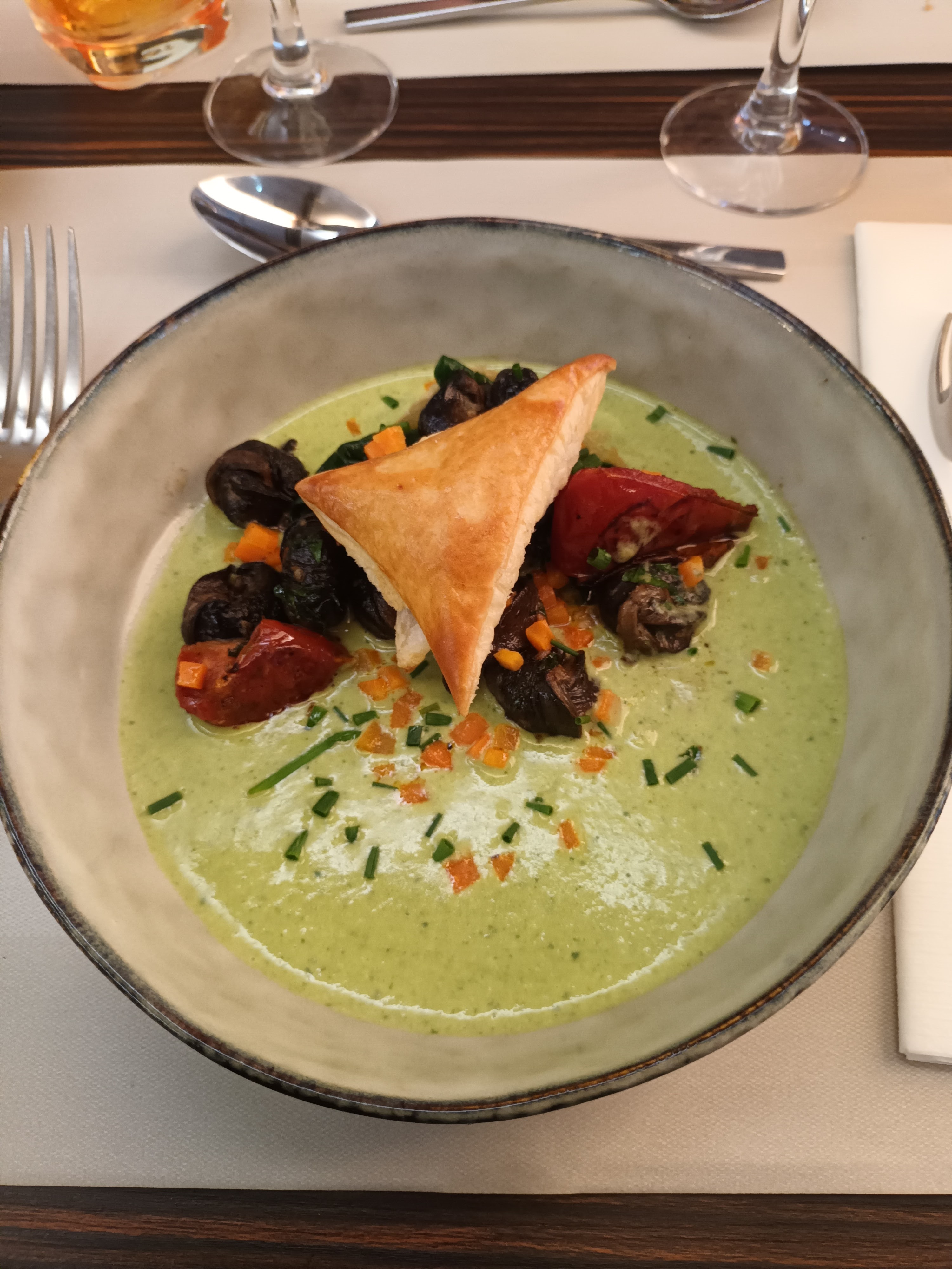 Très bonne expérience au restaurant, les asperges de saison, le cabillaud avec des petits légumes, c'était très bon, merci.