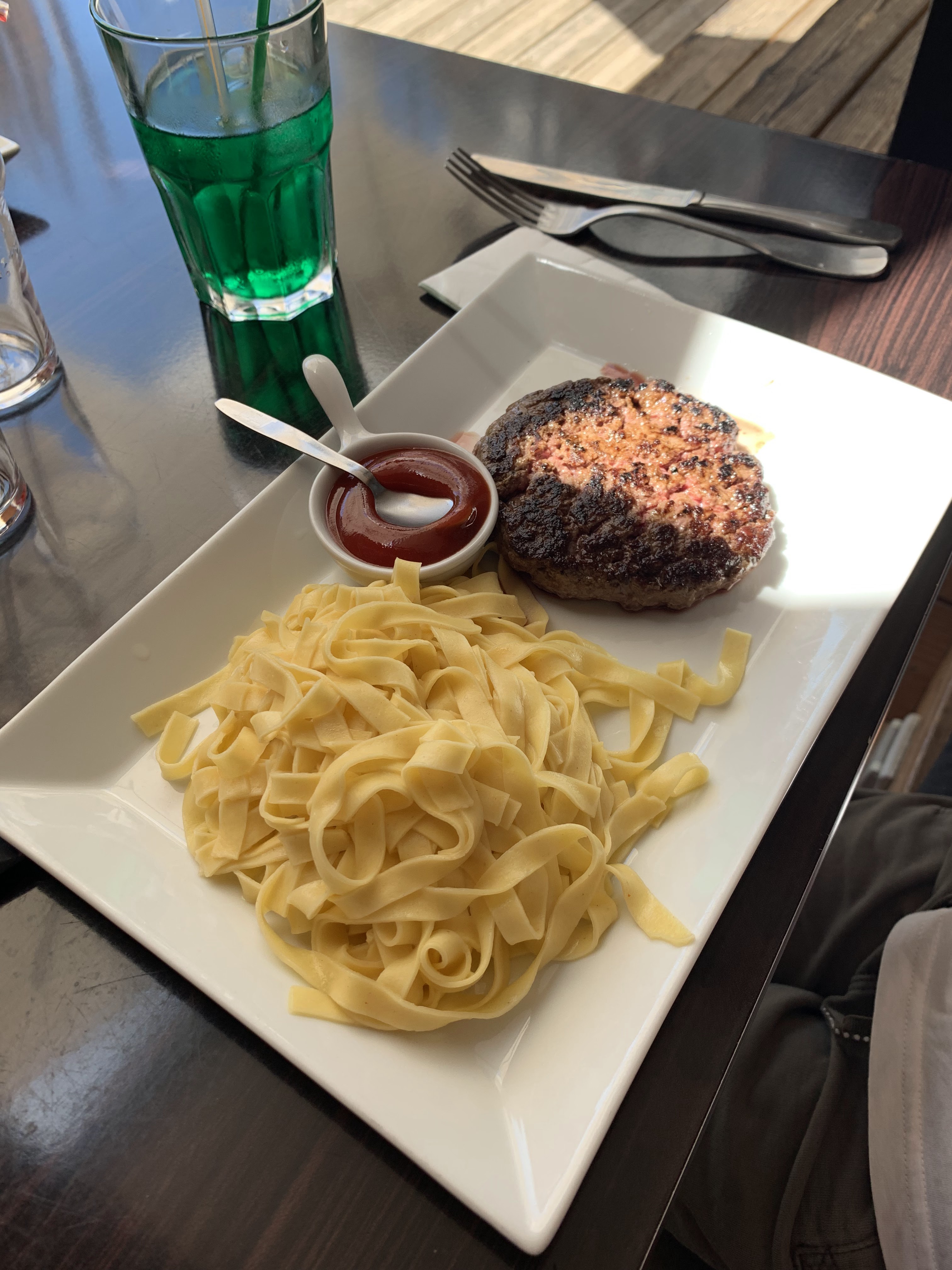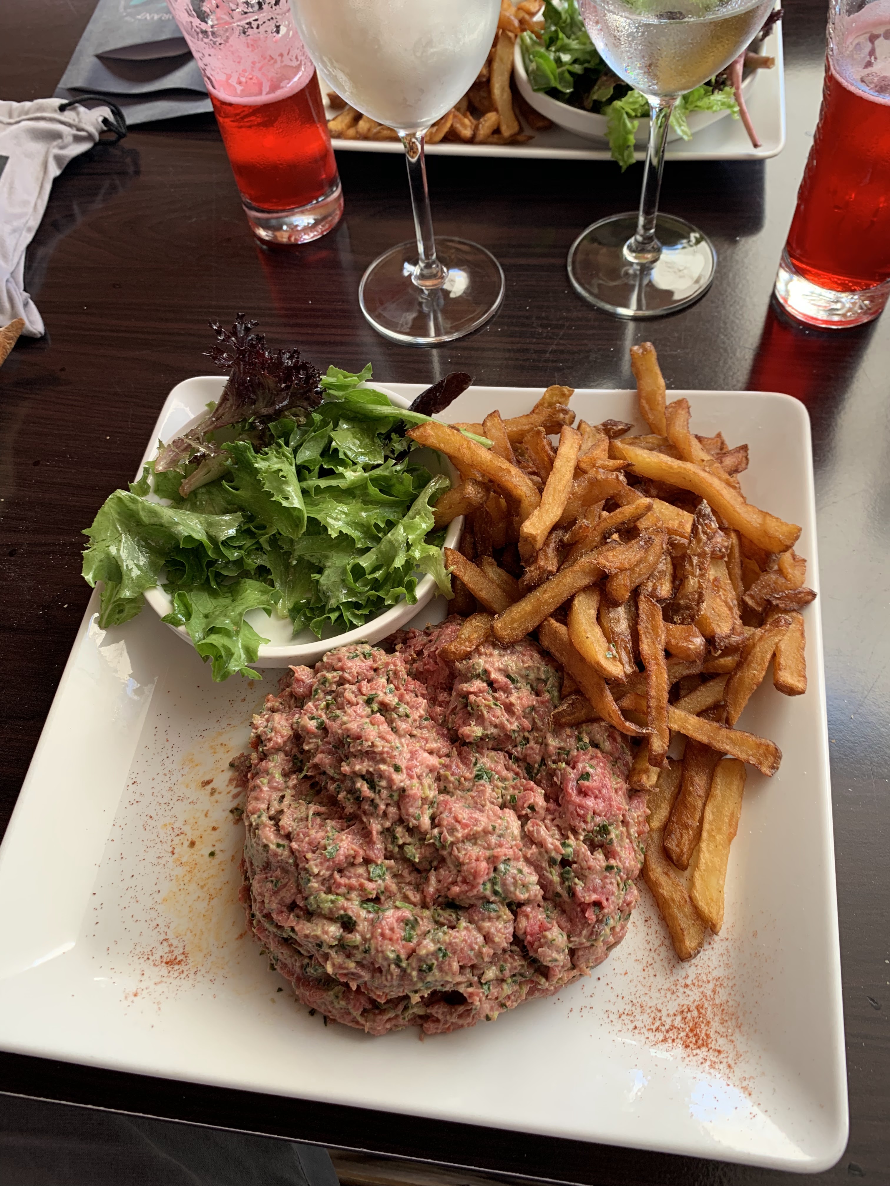 Super sympa la terrasse. Un bon moment passé auprès d'un bon repas. J'ai pris le tartare xl. Bien assaisonné, les frites étaient peu grasses et croustillantes. Une bonne adresse.