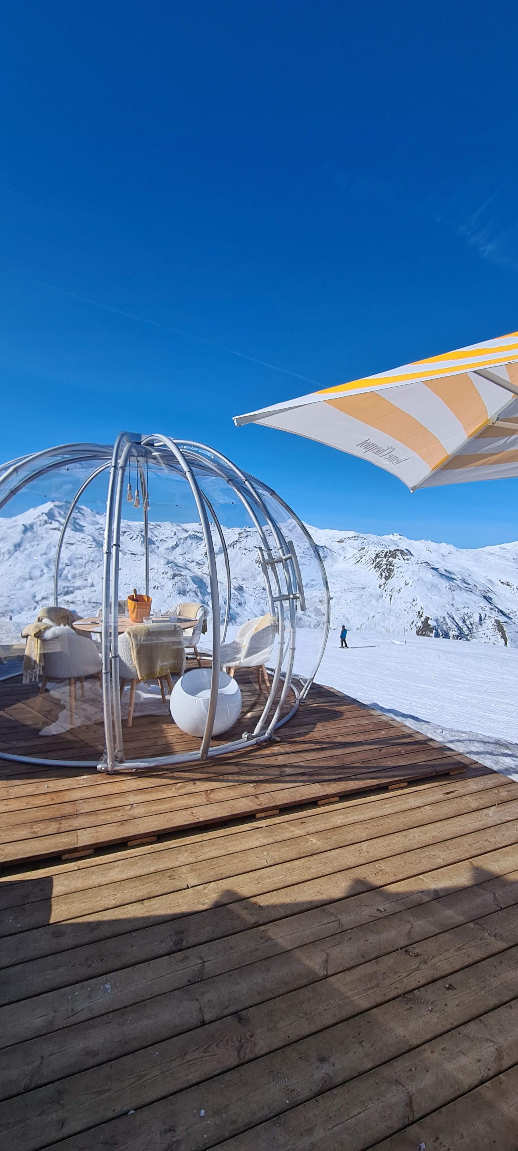 Une belle découverte en sortant du télécabine roc1 venant des Menuires. Nous n y avons pas mangé mais nous sommes resté boire un verre en écoutant un DJ qui mixait vraiment bien. Une super ambiance. Si vous voulez passer une fin d après midi ski sans aller voir le zoo bling bling et surfait de la folie douce de Val Thorens c est le lieu idéal. On vous laissera entrer sans assassiner votre portefeuille Une belle vision du bar d altitude Maj2023: les prix ont inflaté un peu pas mal quand même Attention à ne pas devenir la folie douce😉😱