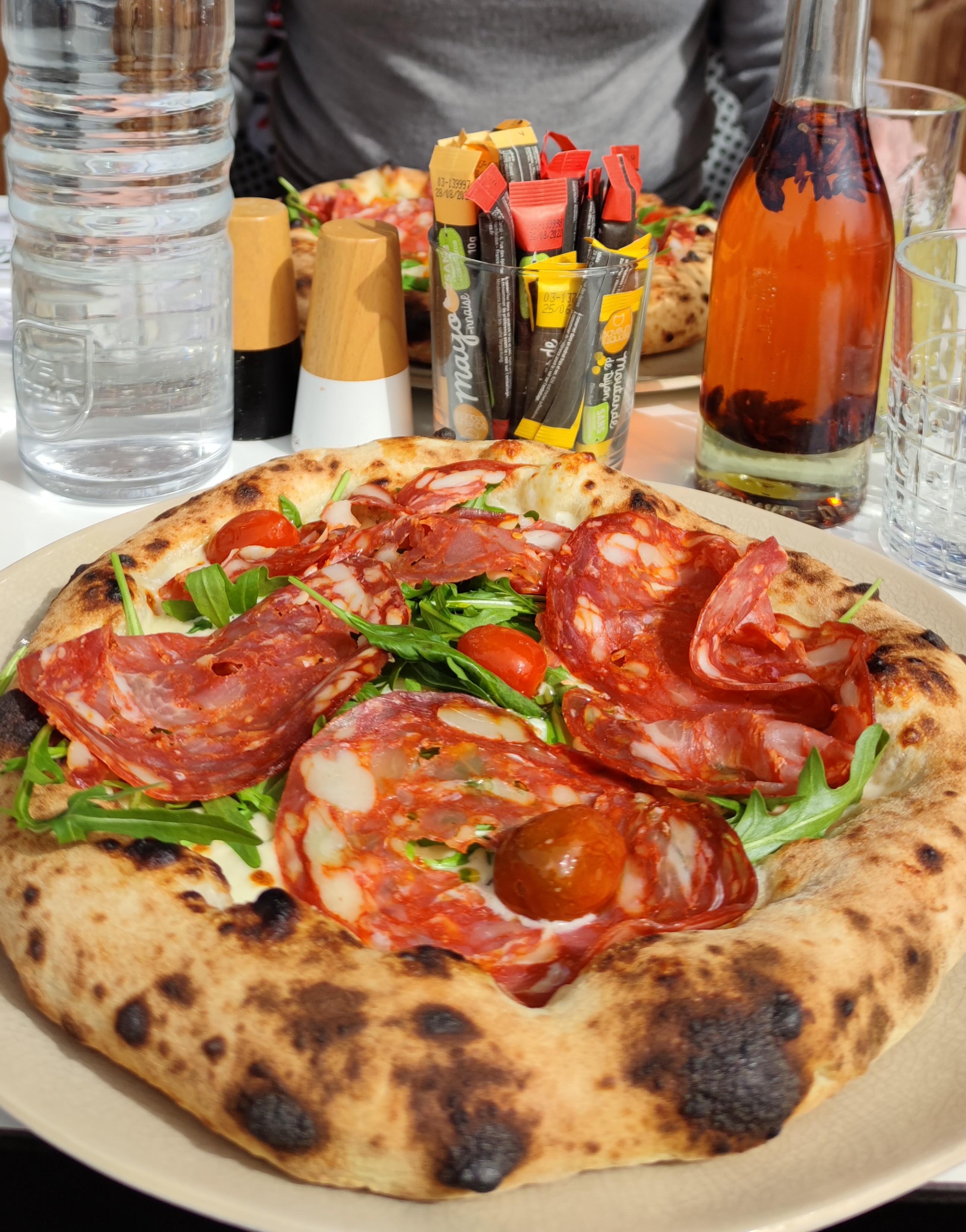 Terrasse très sympa, pause musicale au soleil, service rapide, bonnes pizzas, un peu chères
