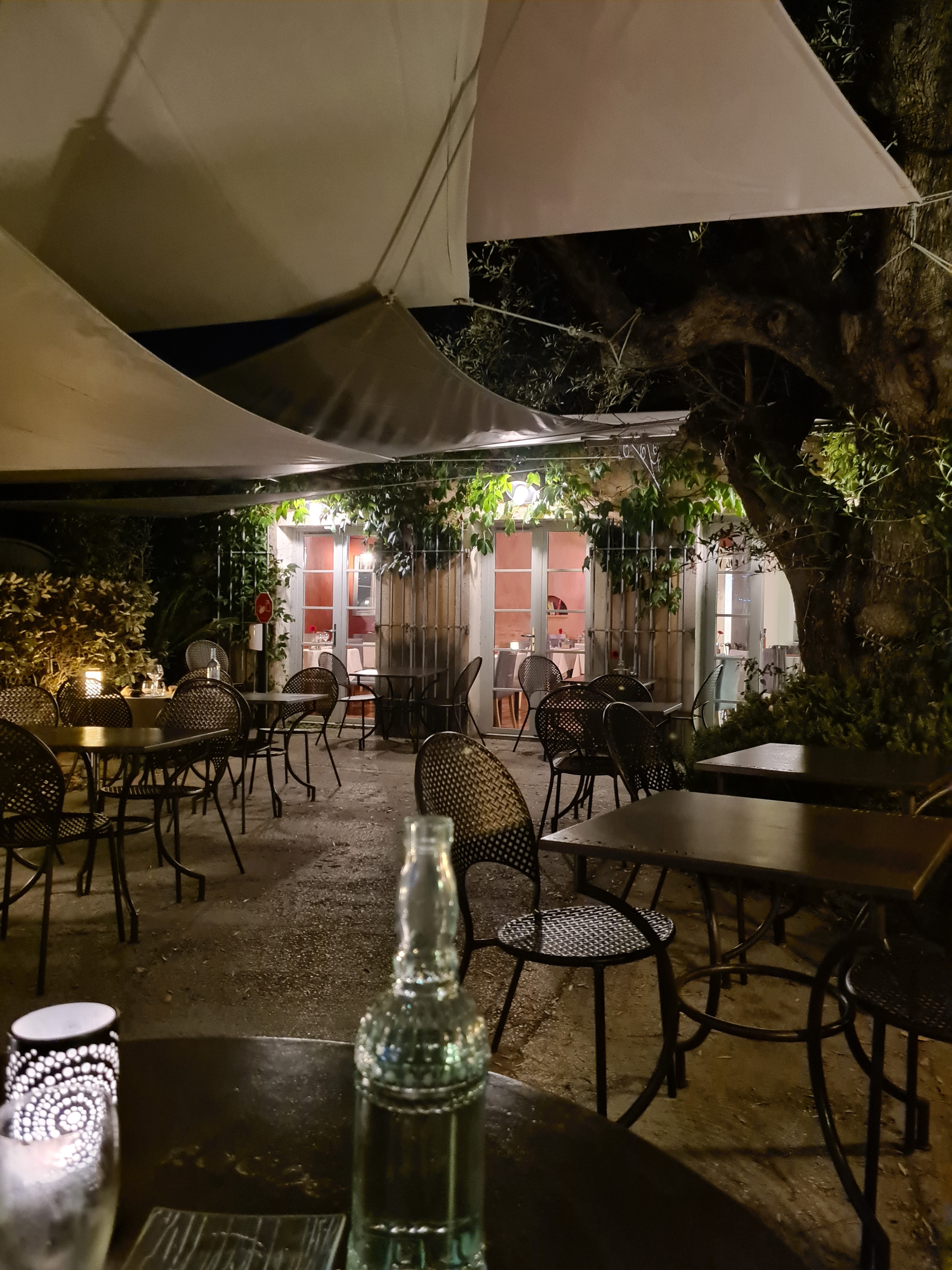 Un mot : Parfait ! Cadre intimiste au calme à l abris des oliviers, tout le personnel est agréable et aux petits soins. Le repas est excellent... Découpe du poisson devant nous, cuisine fine et originale... Merci à vous pour ce moment !