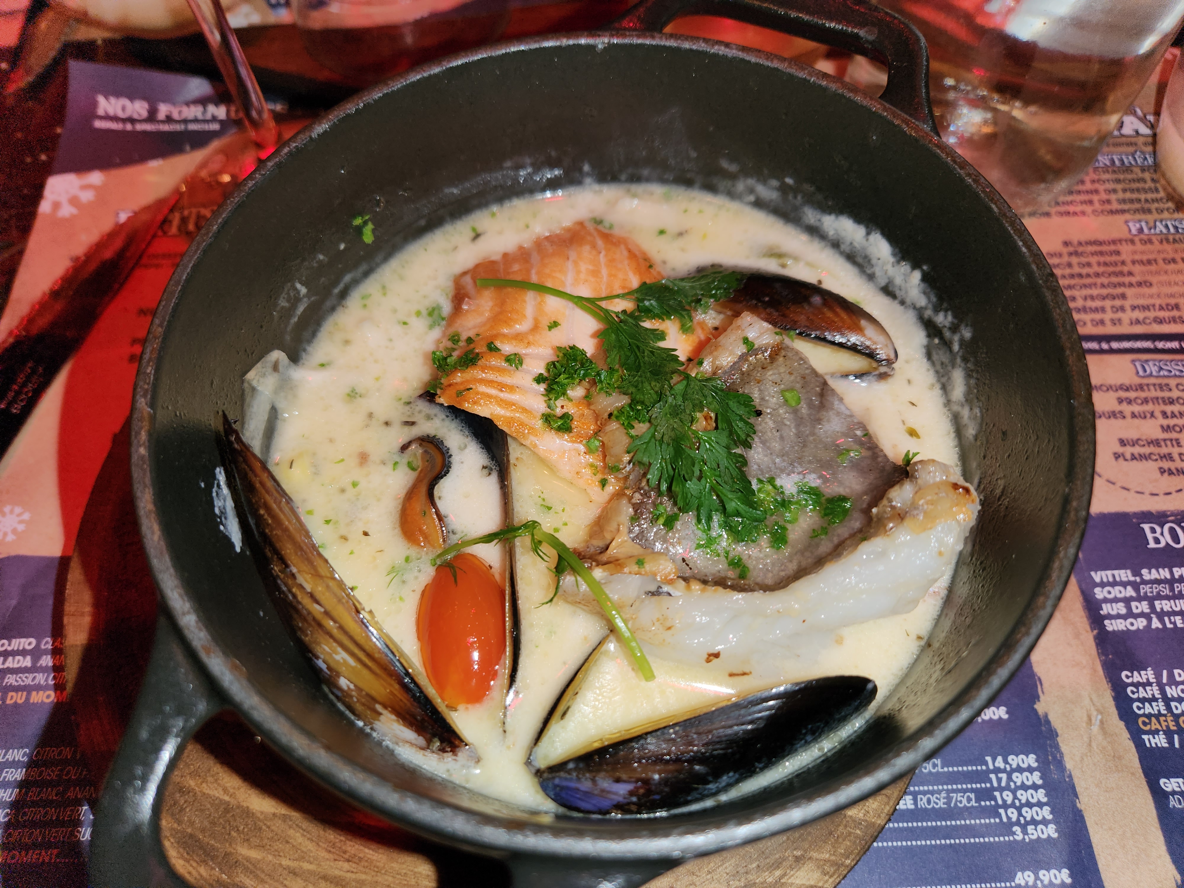 Très moyen pas de menu, à la carte obligatoirement, dans le menu enfant pas de boison, en rupture de ketchup pour les enfants c'est pas cool, trois desserts inscrits manquent, idem pour le poisson, l'ambiance accueil froid addition salée, décevant