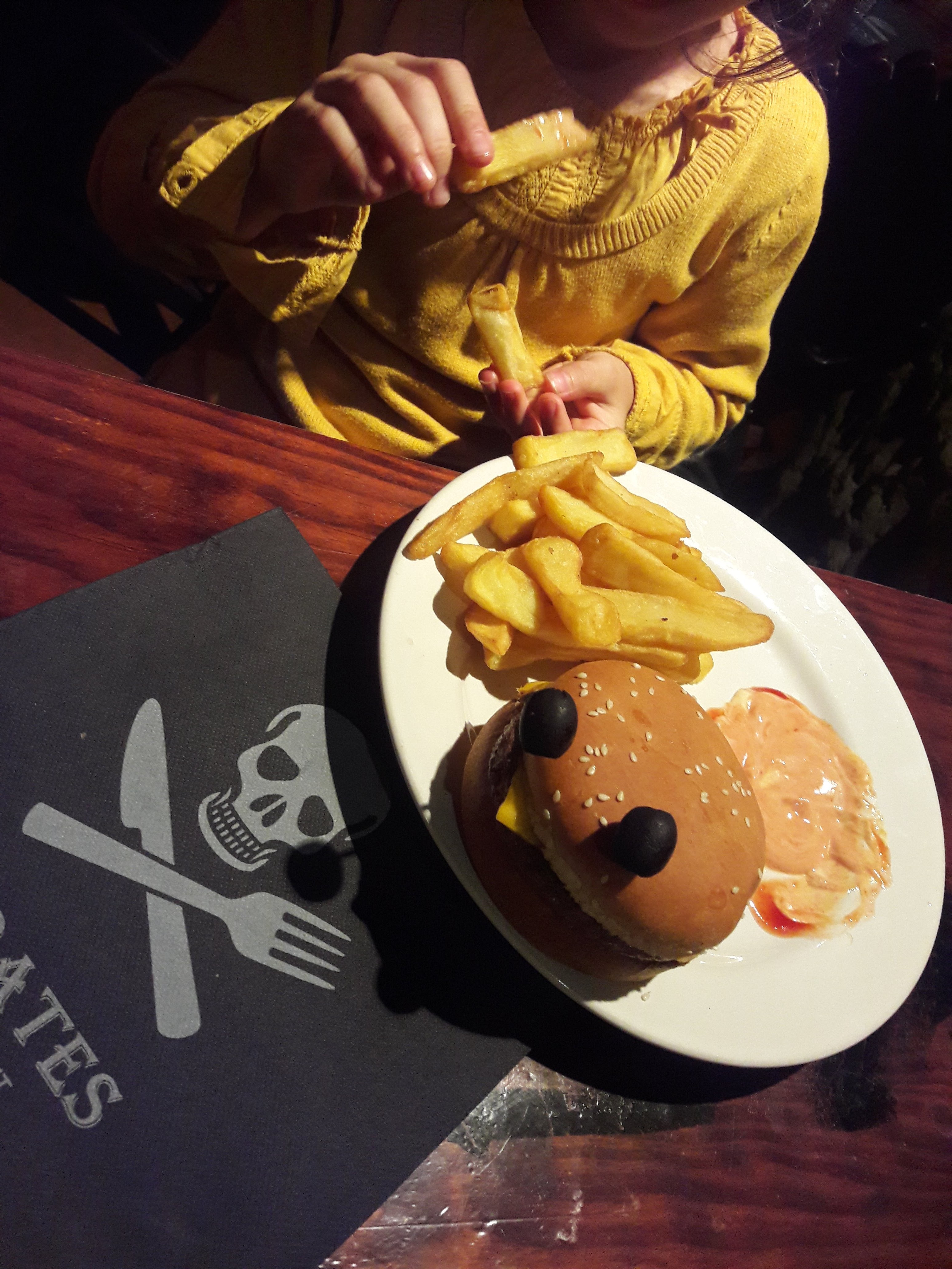 Un restaurant très joli on arrive on est toute suite dans l'univers des pirates du décors aux personnels. Les plats sont biens garnis et succulents . C'est de la très bonne cuisine maison même les nuggets et frittes pour les enfants sont faits maisons . Nous nous sommes régalés et le personnels etaient très agréables. À peine arrivé nous avons pu commander et nous avons été vraiment très vite servis à peine 5 minutes pour les enfants et nous 9 minutes environ. Ils repassent régulièrement pour voir si nous avons besoins de quelques choses. Un spectacle super à 20h30 sur l'univers des pirates nos enfants de 6 et 2 ans ont beaucoup aimés . Un prix de 80 euros pour 4 (2 adultes +2 enfants ) en prenant des boissons pour nous et les enfants car pas de boissons dans les menus enfants . Un plateau charcuterie pour 2 bien garnis et 2 burgers.