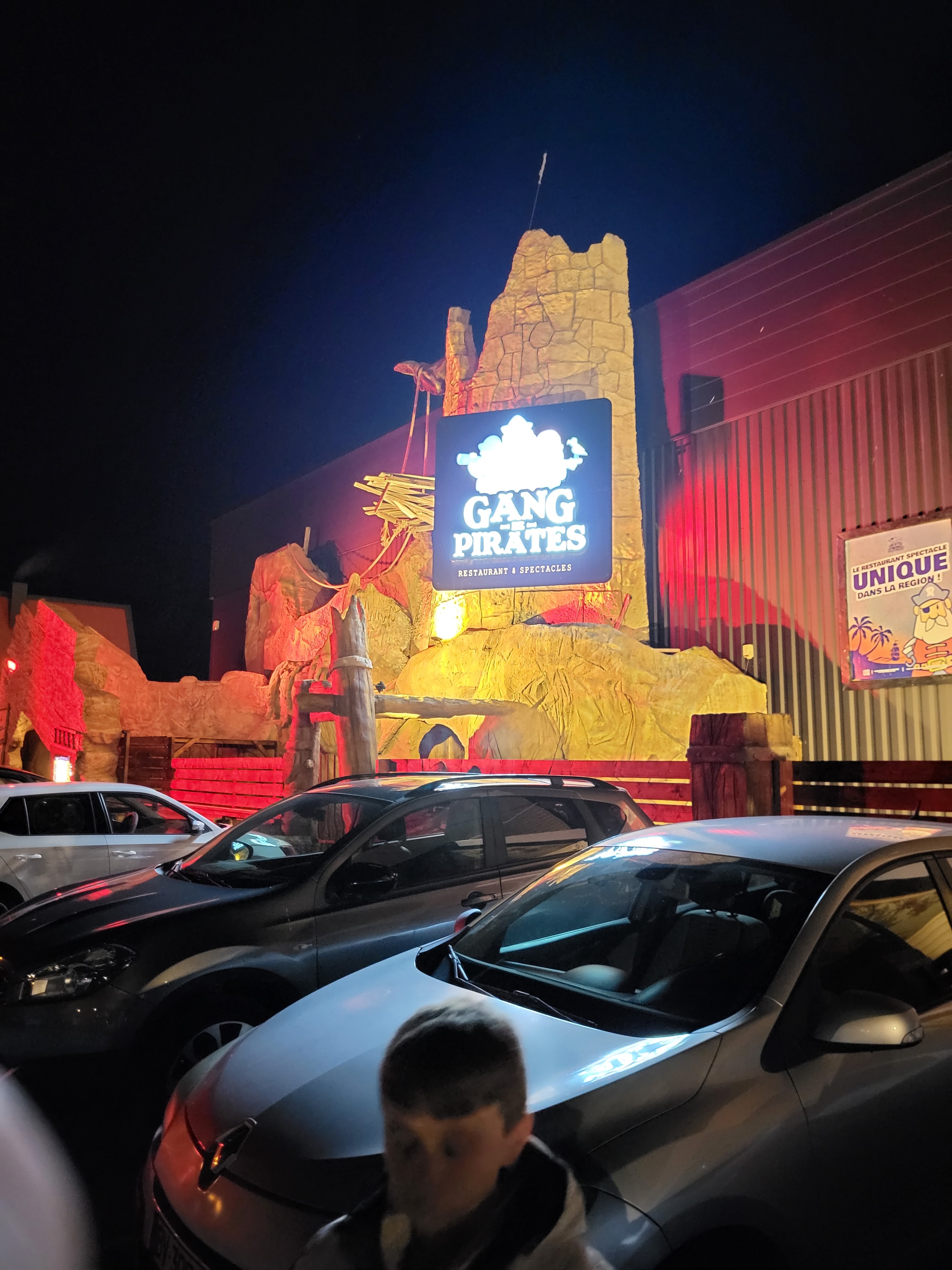 Un accueil amusant et chaleureux , des serveurs très sympathiques , un spectacle à la fois drôle et impressionnant mêlant bagarres de pirates , danse et acrobaties . Un décor très travaillé rappelant une attraction très connue de Disney Land Paris . Des repas bons et peu onéreux. Émerveillant pour les enfants et les parents ,convivial . Je le conseille fortement !