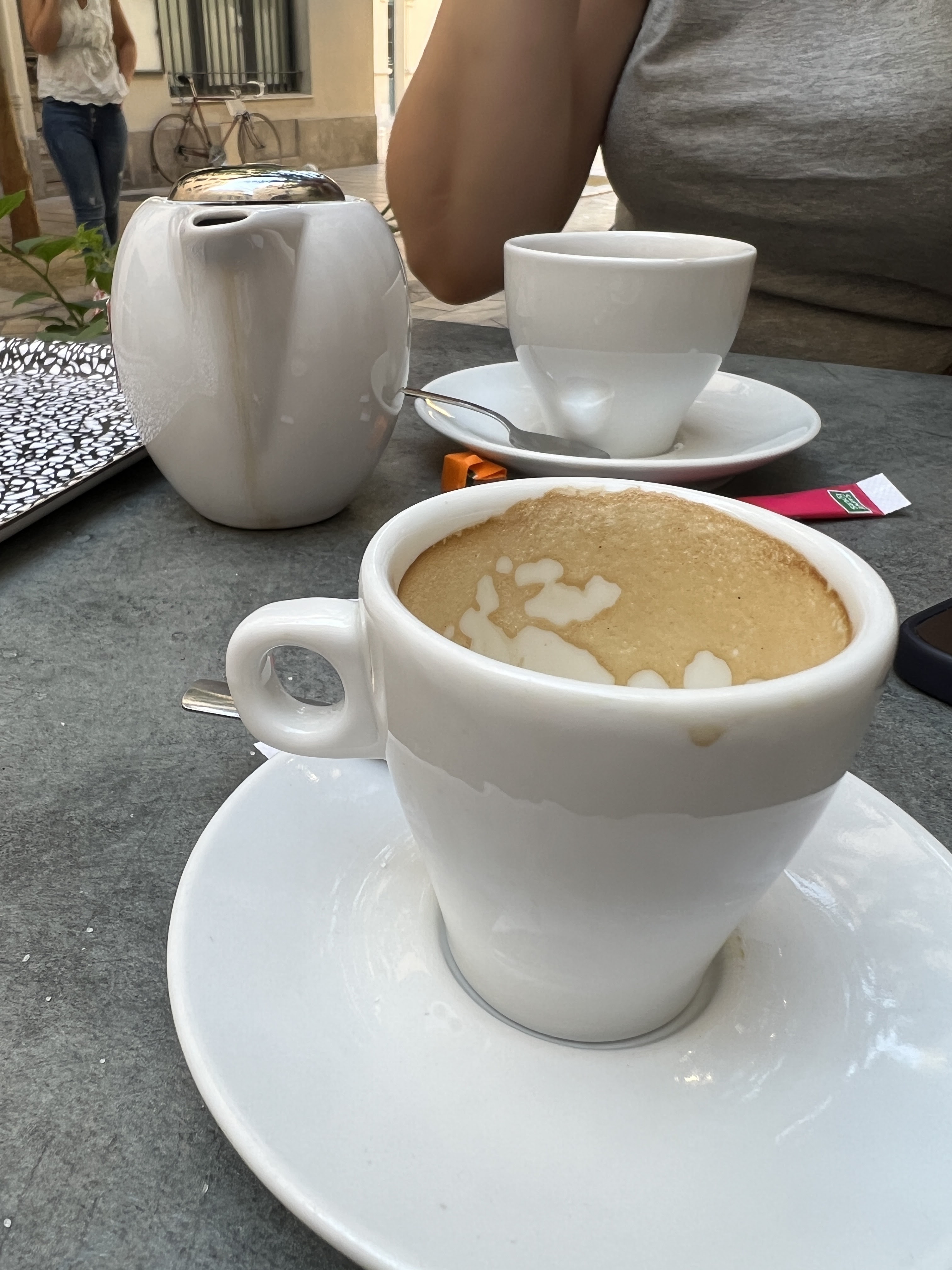 Totalement mignon et ombragé en centre ville. Service attentionné d'un monsieur plus âgé et boissons très savoureuses. Malheureusement, je ne peux montrer que ma noisette vide.