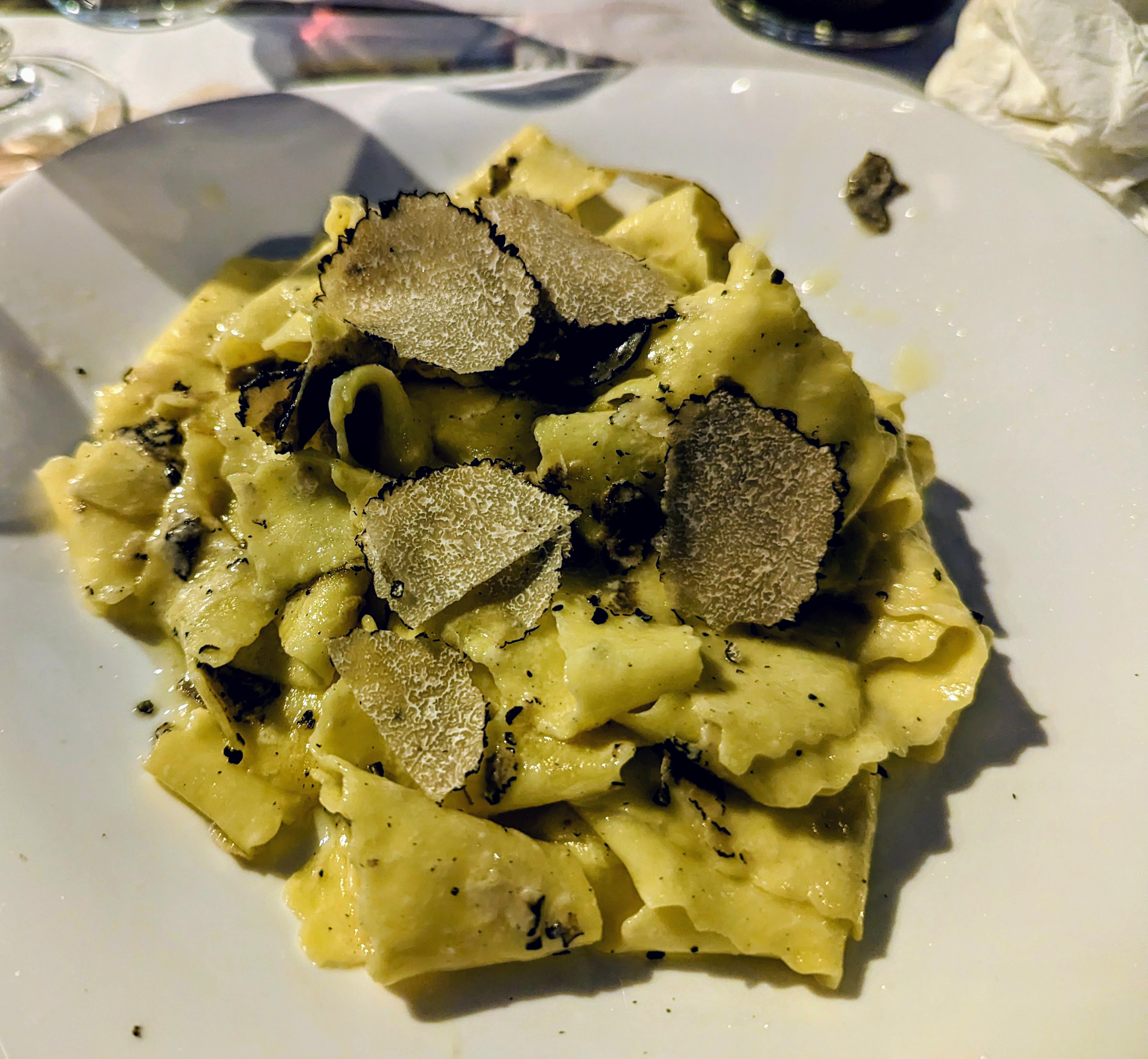 Les propriétaires sont une bombe explosive de convivialité et d'hospitalité. J'ai apprécié les pappardelles à la truffe, un vrai délice, mon partenaire (Emiliano) était satisfait à 100% de ses tagliatelles aux cèpes et San Giovese ! Comme nous étions gourmands, nous avons même réduit de moitié une portion de lasagne spatiale !!! Les grands !!! Excellente qualité, soirée amusante garantie !!!