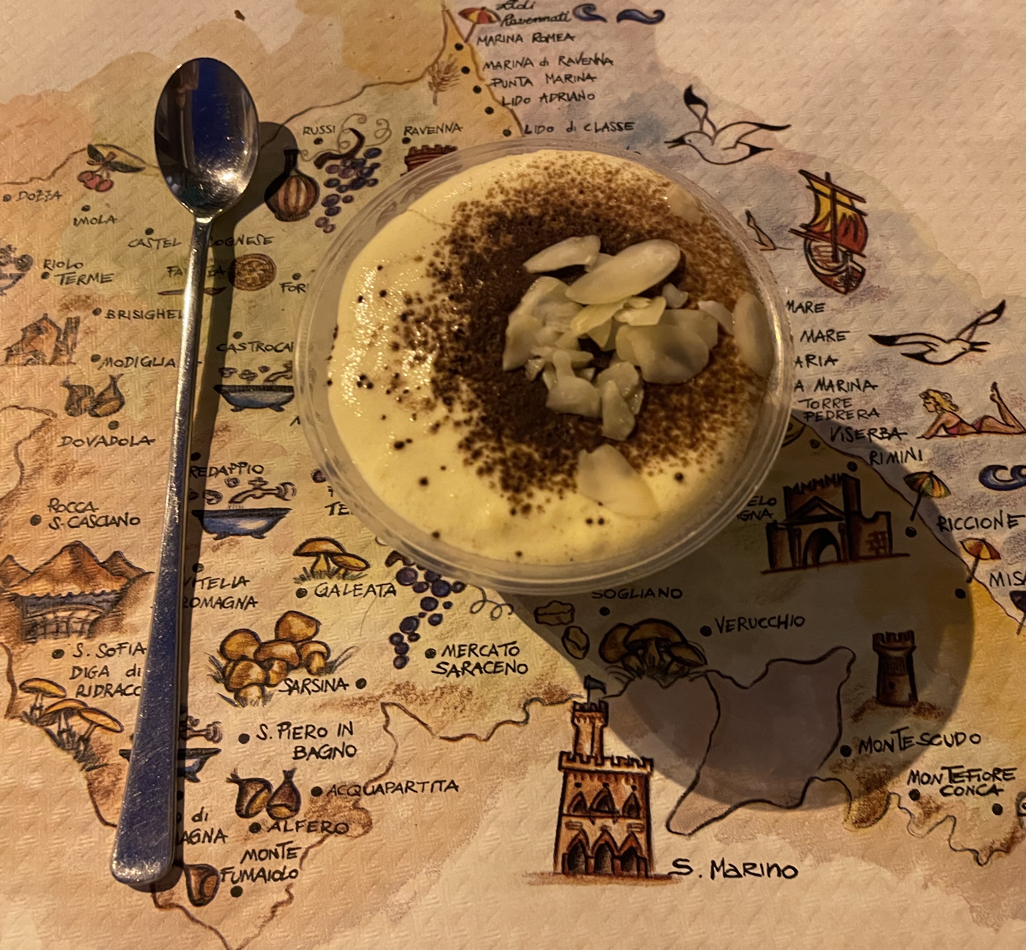 Super soirée nous nous sommes bien régalés de l’anti pasti au dessert tout cela dans une ambiance conviviale et bonne enfant😄😋 Nous avons également beaucoup ri grâce aux propriétaires un charmant couple d’italiens sur fond de musique italienne et rock des années 80. À renouveler sans aucun doute