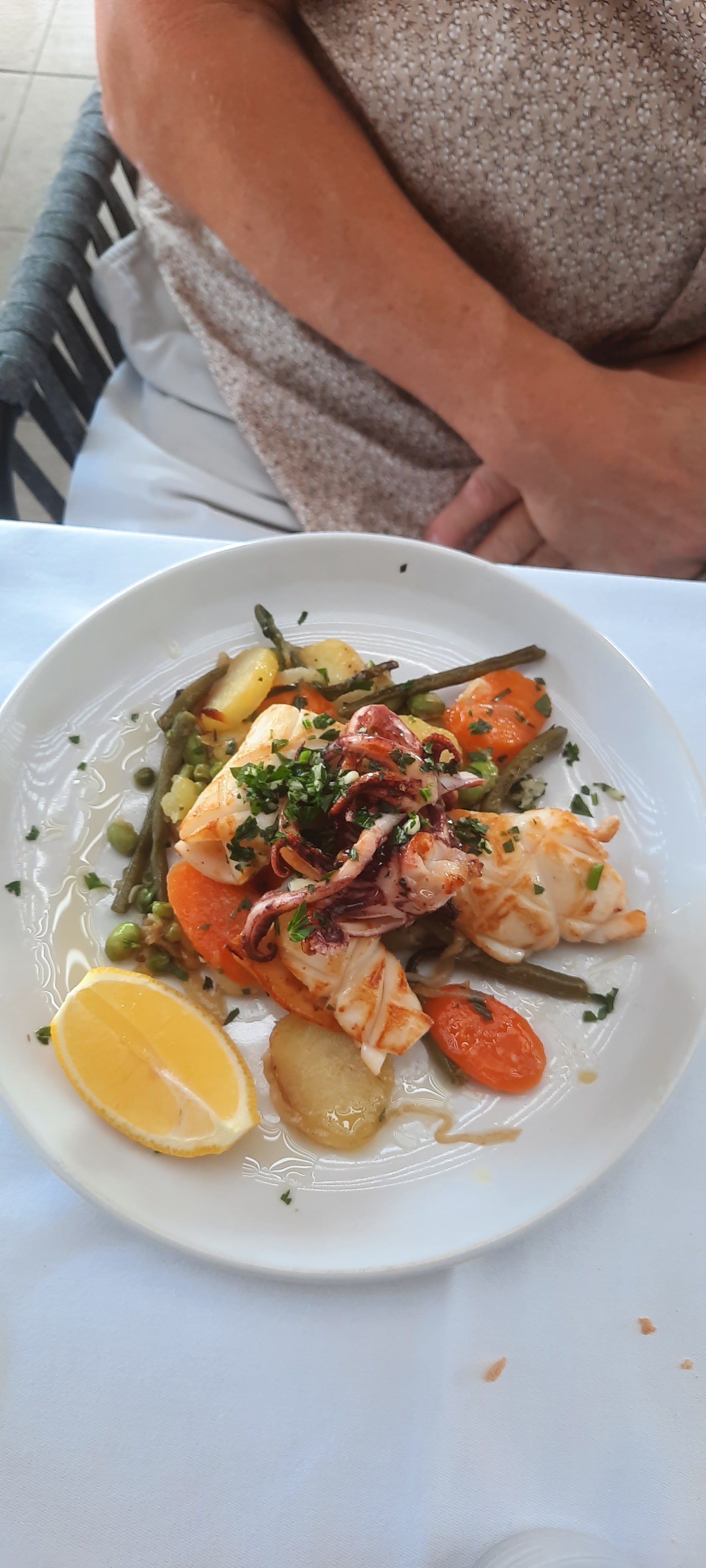Très bel endroit, manger sur la terrasse au soleil mi octobre il faut profiter. Choix de poissons et autres dérivés très bien préparé qui font sublimer nos papilles.