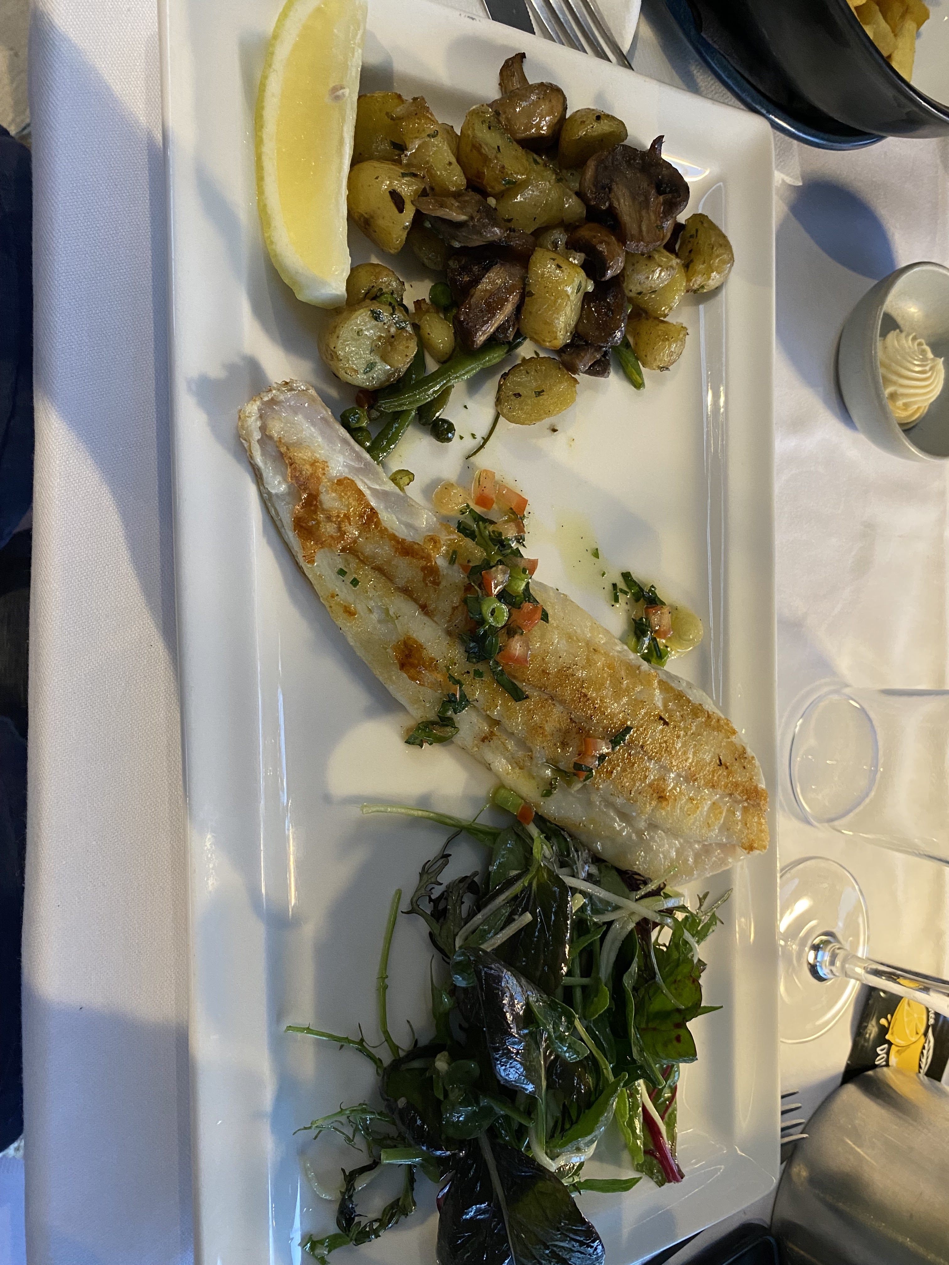 Très bon restaurant Accueil très agréable Déco moderne Très bons poissons à la cuisson parfaite