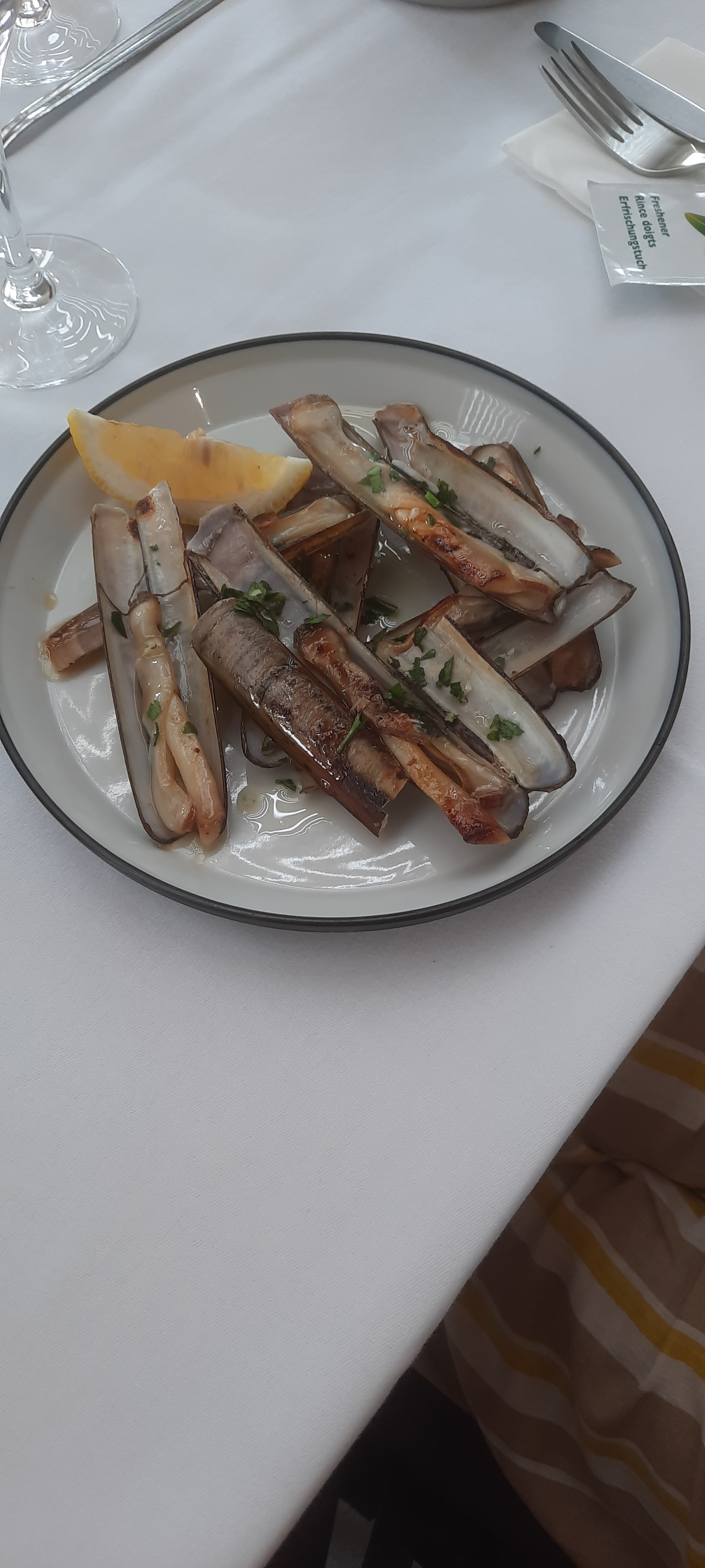 Nous avons dégusté (et ce fut une belle découverte pour moi) des couteaux grillés en persillade, et bien d’autres mets délicieux dans une ambiance douce et chaleureuse avec un personnel agréable et très à l’écoute Un très bon moment passé en terrasse à proximité des bateaux. Merci