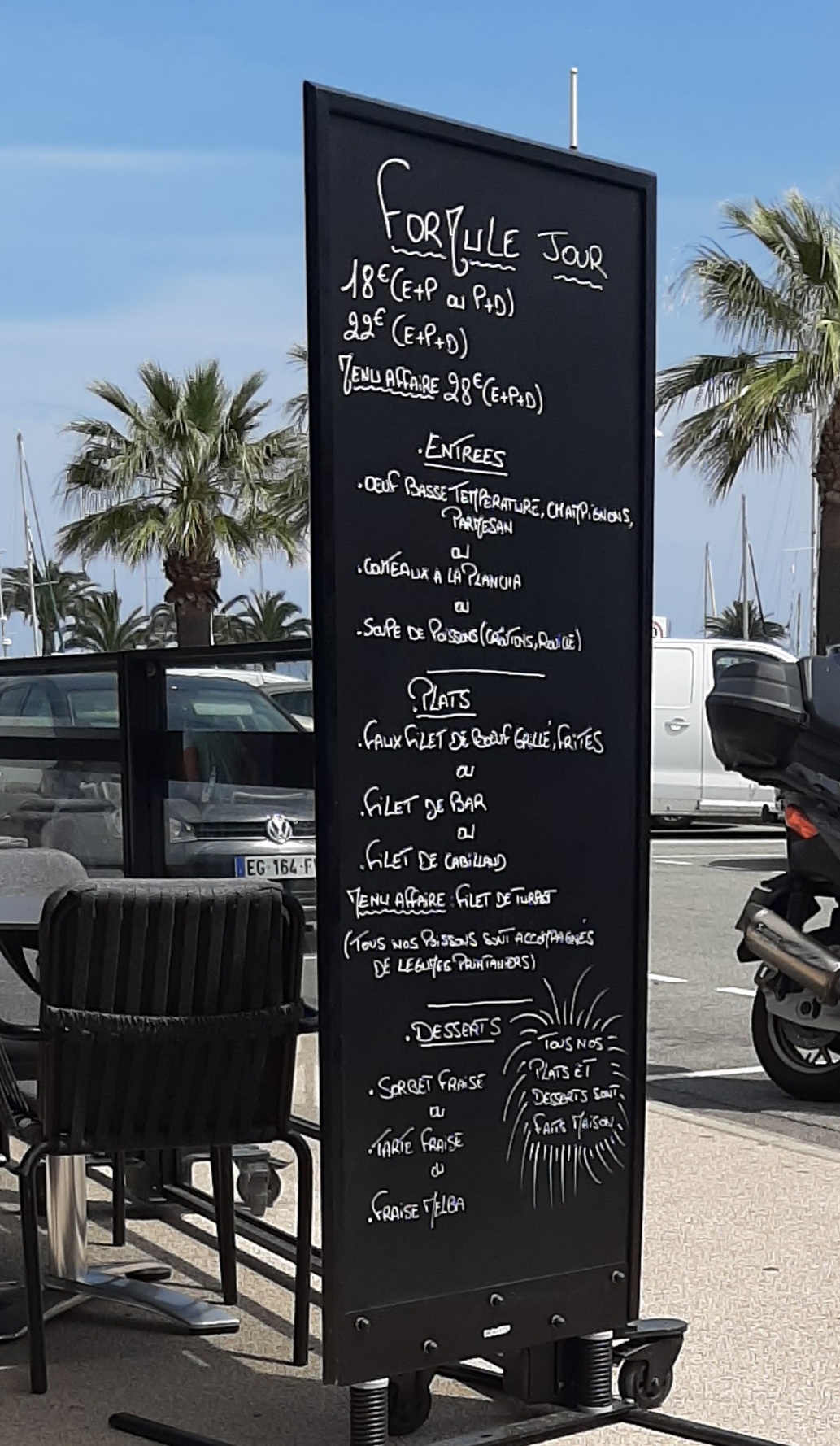 La fraîcheur des poissons est exceptionnelle j’ai testé le Saint Pierre et le turbo, juste parfaitement cuits à la plancha et accompagnés d’une ratatouille maison. En entrée les couteaux étaient parfaitement préparés. Déserts simples mais très parfumés ( tartelette citron ou sorbet fraises). Une jolie carte des vins. Le tout dans un très joli cadre avec une sympathique bande son. Service et accueil parfaits A découvrir sans faute