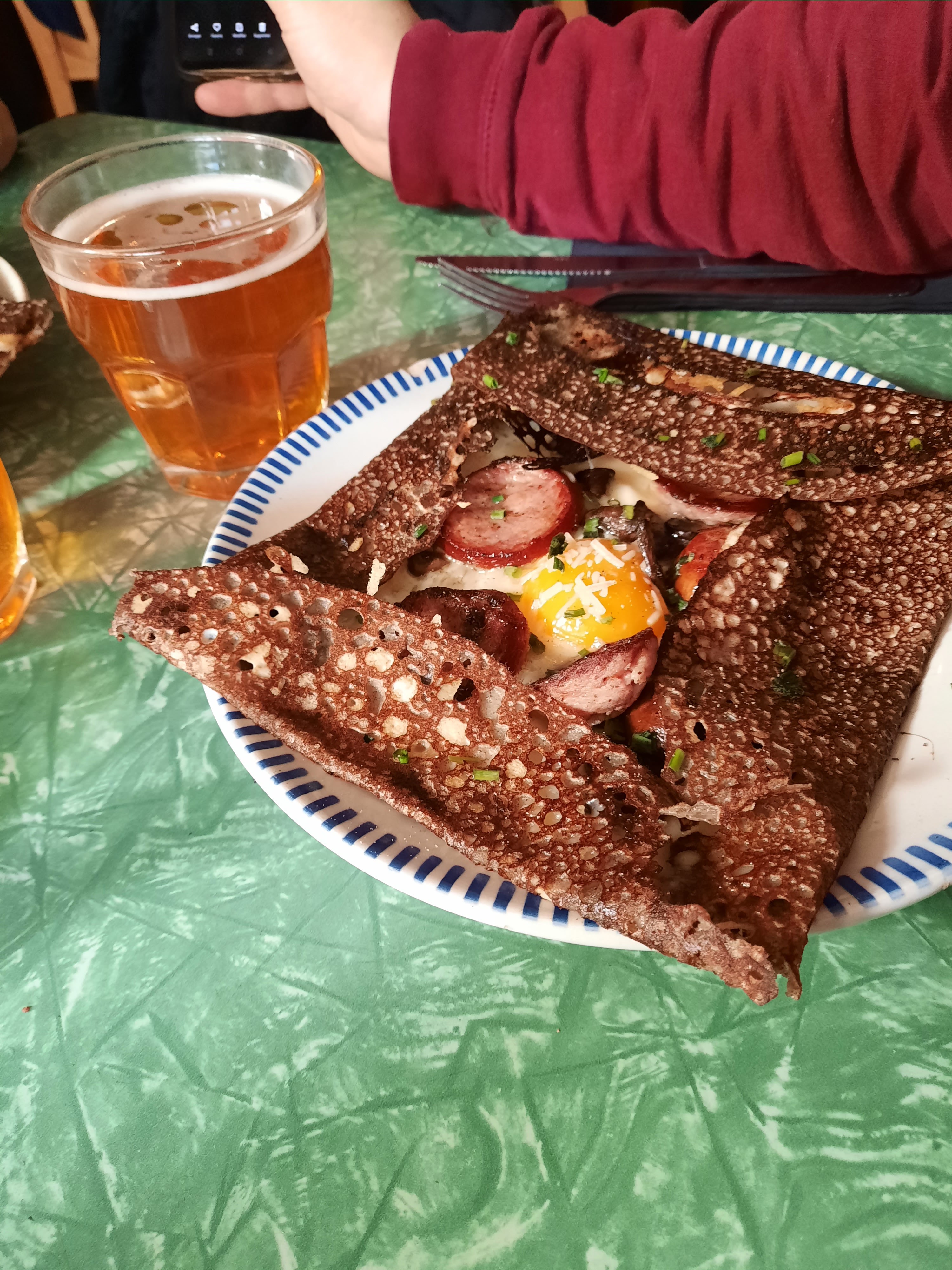 J'ai mangé quelques crêpes et galettes dans ma vie, et celles-ci sont les meilleures que j'ai jamais mangées ! Cet endroit est hors des sentiers battus. Ce n'est pas le genre d'endroit sur lequel vous pourriez tomber par hasard. Il nous a été gentiment recommandé par notre hôte, lors de notre séjour dans un appartement voisin. Et quelle excellente recommandation ! Un joli petit restaurant avec une super ambiance. Le personnel était vraiment sympathique et serviable, et très accommodant avec notre français peu brillant. Il y a une bonne sélection de cidre français, ce qui est toujours une bonne chose. Et la nourriture était parfaite. J'ai eu la galette Bosrobert (saucisse, œuf etc) puis la crêpe Mi Choco (toutes deux sur la photo). J'espère que nous reviendrons à Belleville un jour, et si nous le faisons, nous nous dirigerons directement vers cet endroit !