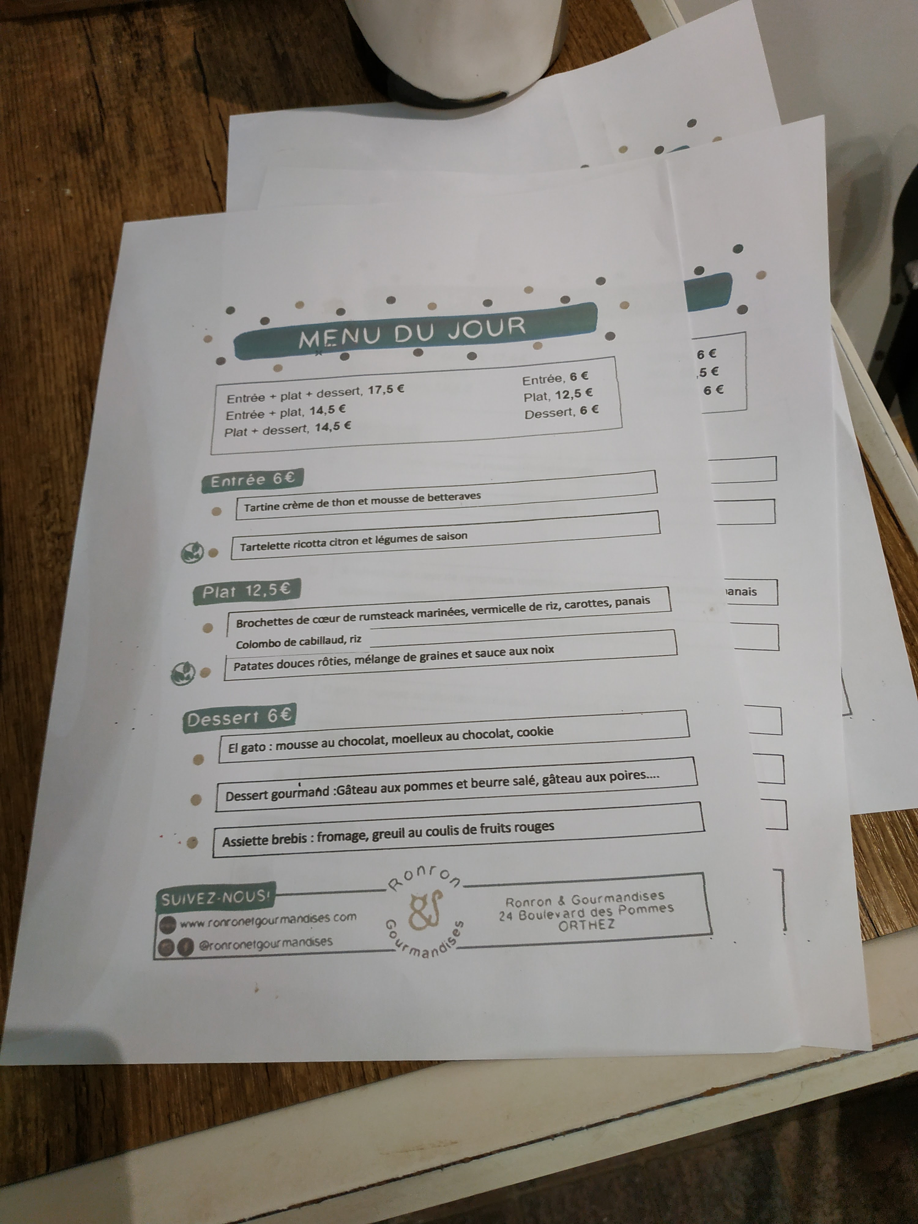 Voici toutes les informations sur le Restaurant ronron et gourmandises qui ce trouve au 24 Bd des Pommes, 64300 Orthez (64). Sur cette fiche vous trouverez les photos, l'adresse, les horaires d'ouverture, le numero de téléphone et les avis clients.Vous pouvez églement rédiger un avis si vous le souhaitez en bas de page.