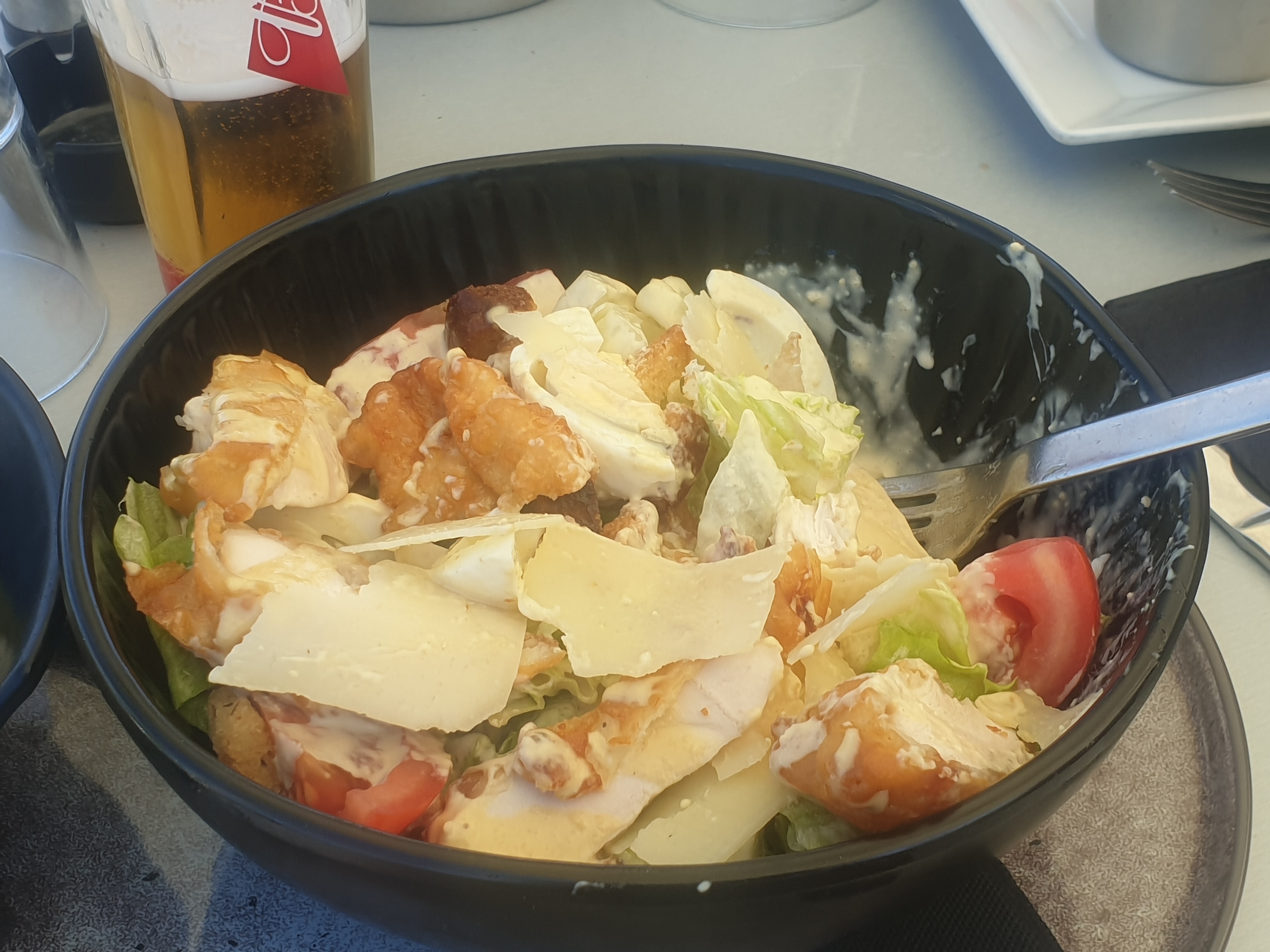La salade César est succulente et copieuse pour les gourmands. Le poulet est pané maison! On aime l'accueil sympathique du personnel.😍