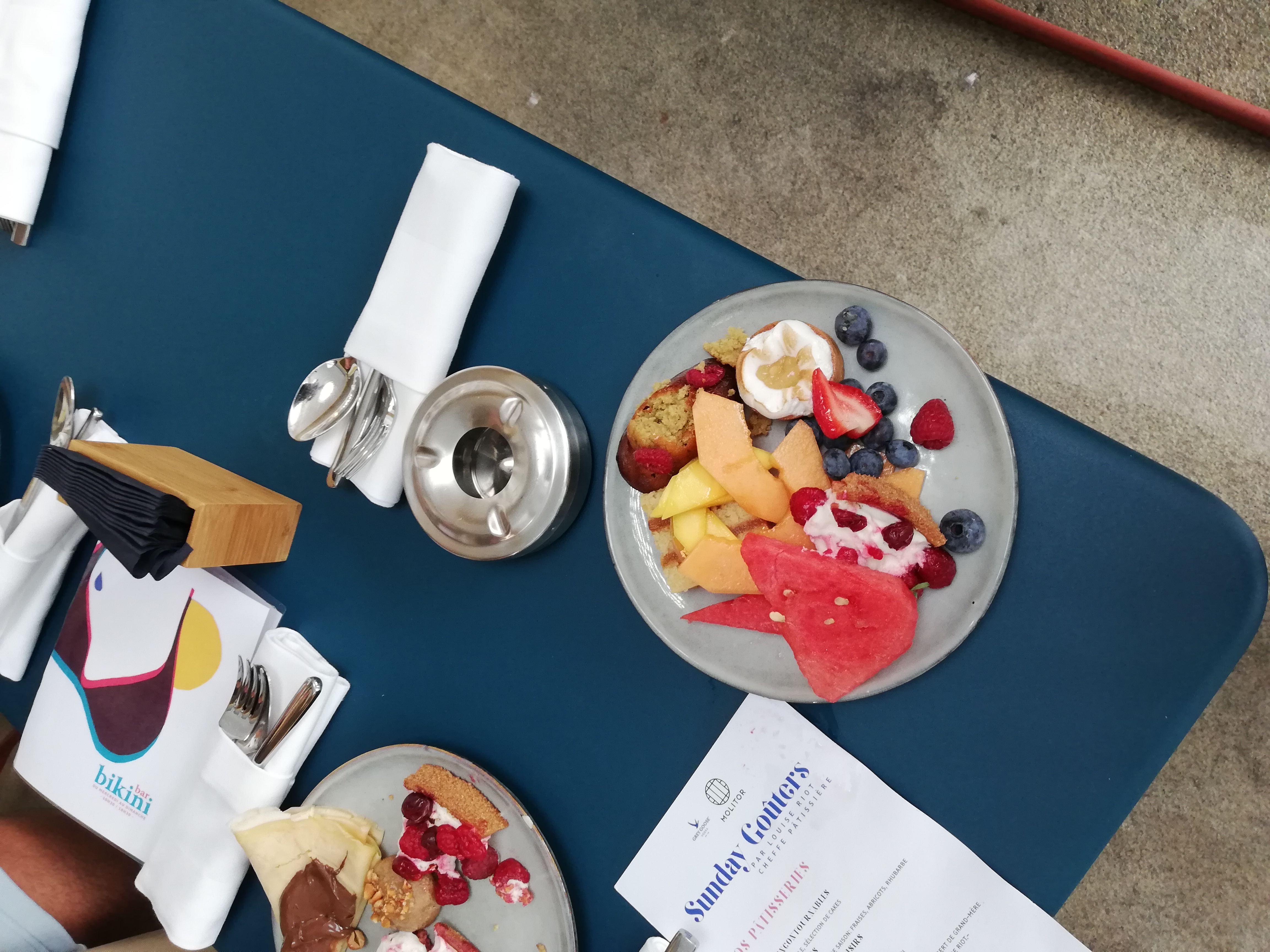 Goûter au top! Les pâtisseries sont excellentes! Et il y a des fruits frais! Le personnel est au petit soin et le lieu est paisible. Le petit plus c'est l'espace ! Nous ne sommes pas les uns sur les autres comme dans certains établissements hum... Petite vue sur la piscine plutôt sympathique. Bref foncez! :D