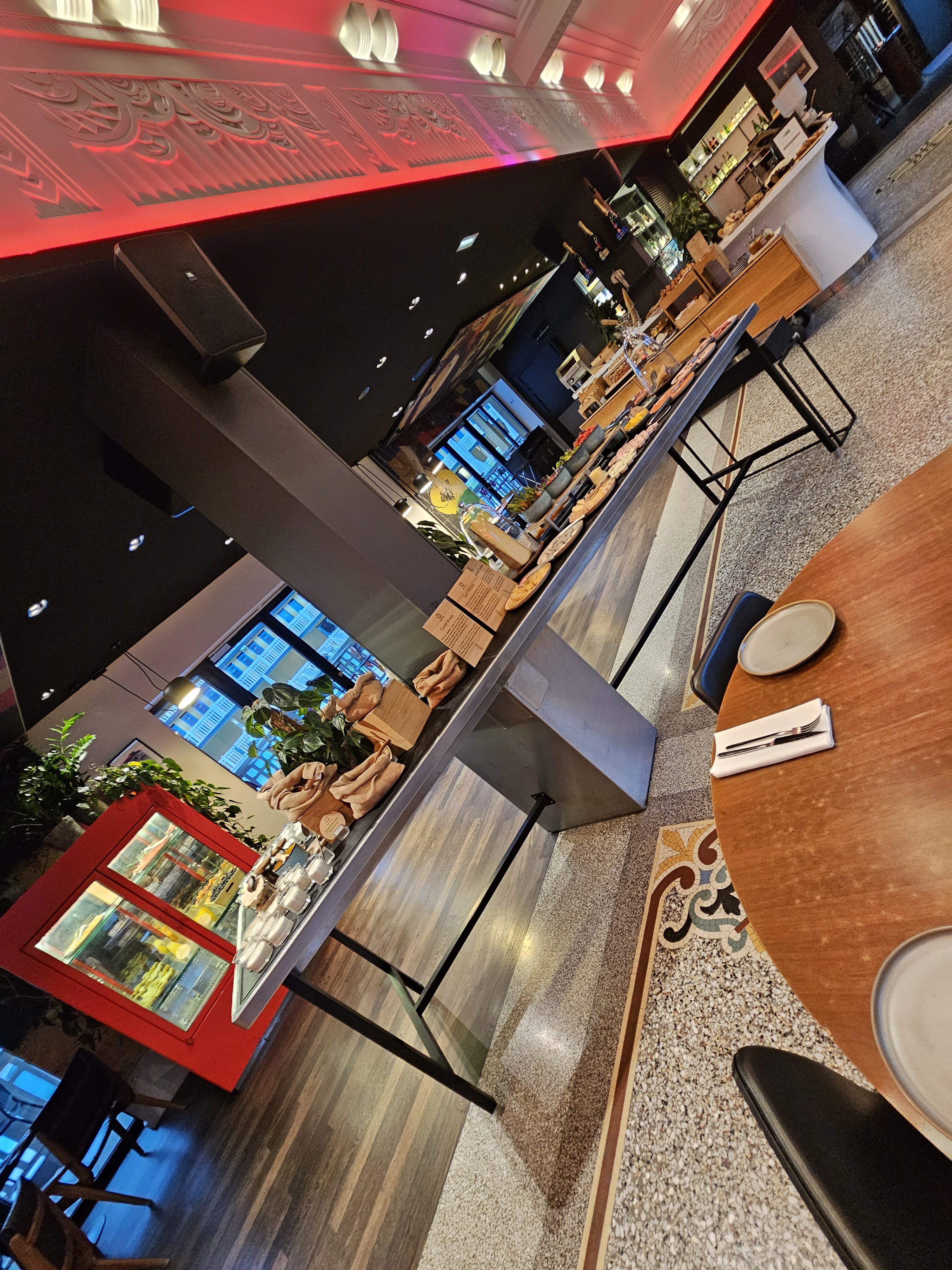 Pour un établissement 5 étoiles, il faut aller au bar pour commander des verres, il faut aussi les rapporter à sa table. Si vous prenez 2 verres et une planche, bon courage ou alors vous faites un aller retour :) et ils ne sortent pas de notes de frais non plus. Table bancale. Et service incompétent. Triste.