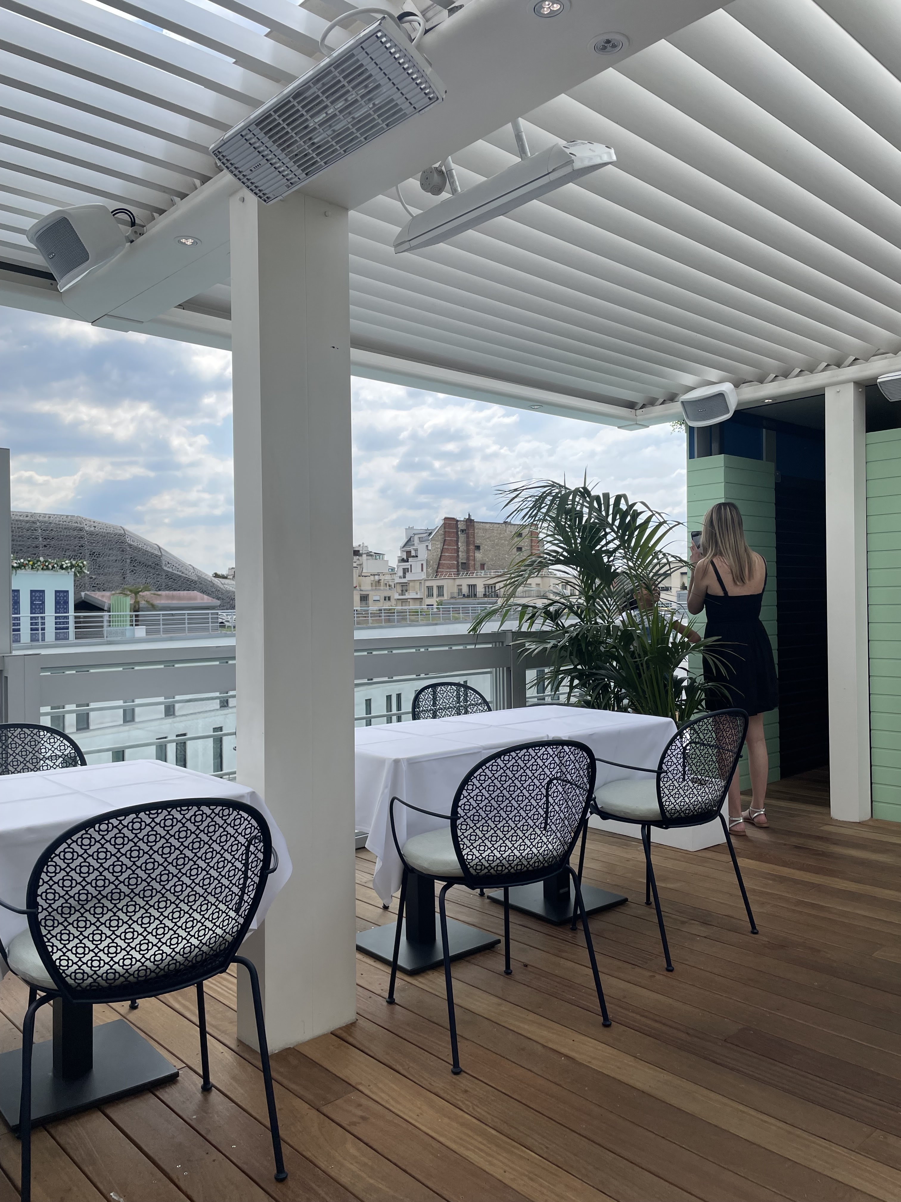 Ouvert depuis le 7 mai, avec une vue magnifique sur Paris et l'impressionnante piscine intérieure de l'hôtel. Cuisine très estivale et délicieuse, la plancha vaut le détour. Le service est parfait et tout cela pour un prix tout à fait accessible. La réservation est obligatoire. Idéal pour passer une soirée d'été.