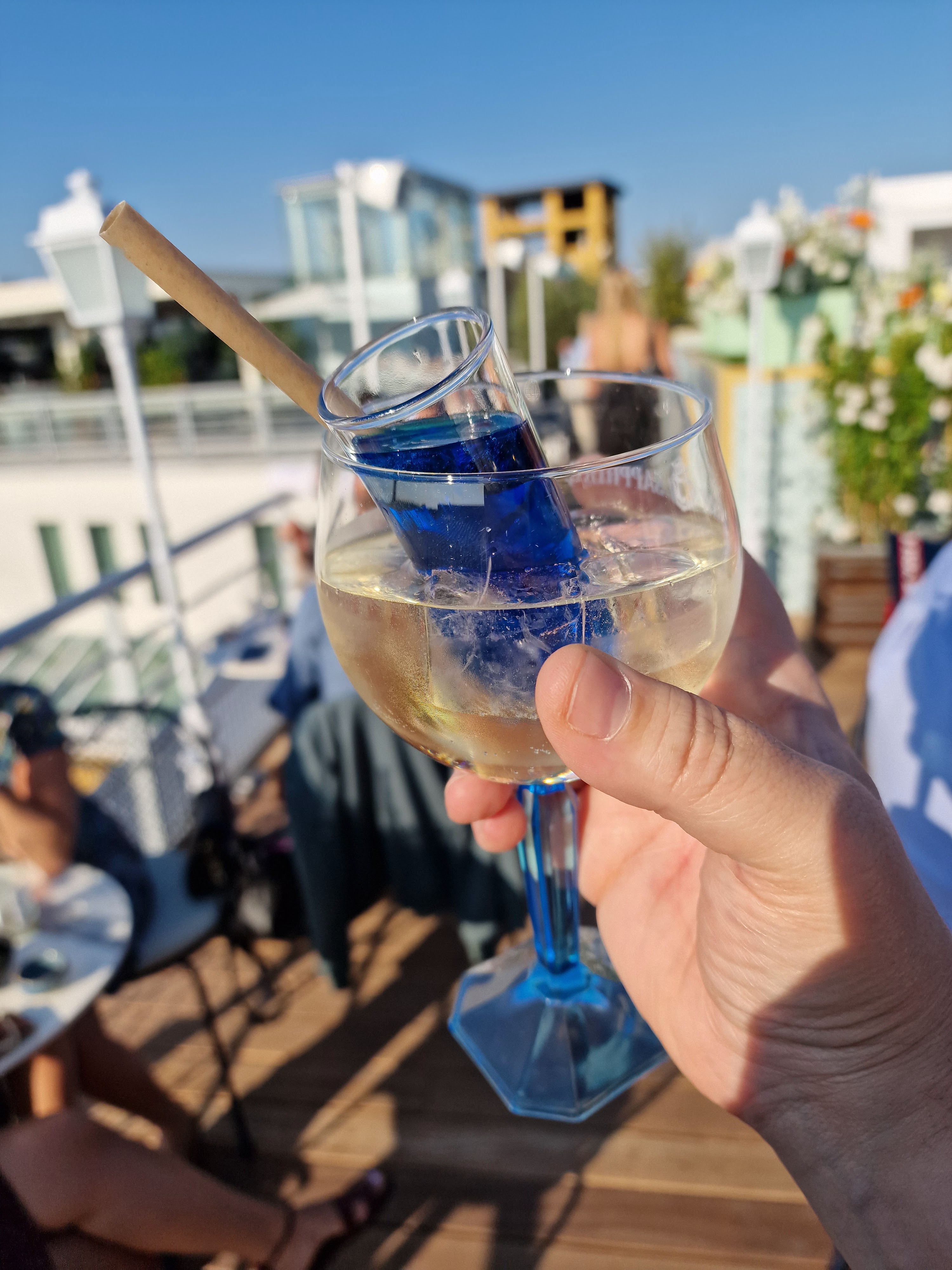 Terrasse avec vue sur piscine, idéal pour un afterwork. Petite Carte de cocktails un peu overpriced. Notre serveur (Raphaël) super sympa!